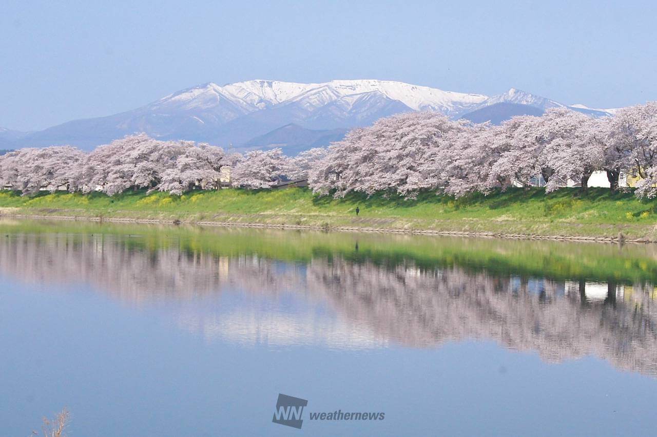 宮城県・柴田町の船岡城址公園から見た、白石川堤の「一目千本桜」。一見、誰もが写せそうな定番写真に思えるのですがそうではありません。薄晴れの天候を選んだのが正解でした。左方から射す太陽の光線が、画面内のすべての事物を浮き立たせています。作品は左斜め上から下へ、手前の黄色い連翹、紅の桃、灰色の道路上には白色のSUV車、黒い電線、紅しだれ桜、茶色の線路、その上を走る列車。そして、主役の染井吉野桜、さらに青空を反射する白石川、対岸の草の緑と、実に美しく色の重なりを表現しています。百点満点の作品で、文句のつけようがありません。撮り鉄ファンでなくとも、拍手を送りたい。