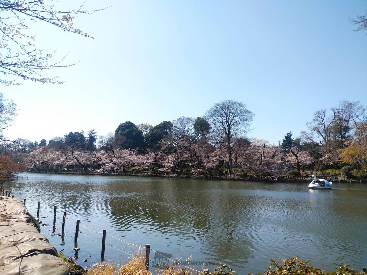 公園全体で約400本、そのうち井の頭池周辺に約200本の桜があります。池にせり出した満開の桜が咲き誇るさまは見事です。また散り際の桜吹雪も風情があります。西園では早咲きの桜が3月の始め頃から咲き始め、多品種の桜が次々に4月の半ば頃までご観賞いただけます。