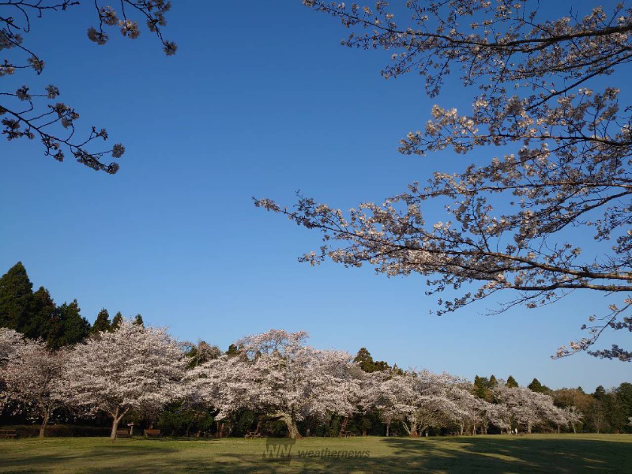 千葉市の中心市街地から東南東約11kmに位置する、約44ヘクタールの風致公園です。園内ではソメイヨシノをはじめ、ヤマザクラやオオシマザクラなど約1500本の桜が楽しめます。「さくら名所100選」の地としても認定されており、特に草原やお花見広場が見どころです。