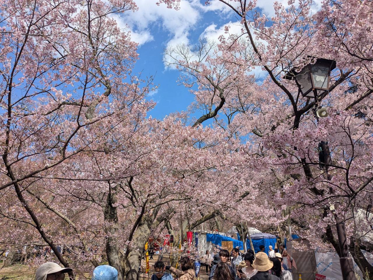 有料期間:咲き始め(開花宣言の翌日)〜桜の散り終わりまで 個人:大人600円(最盛期の土日は1000円)、小中学生300円。団体:大人500円、小中学生250円 令和8年は最盛期の土日に限り、個人大人の入園料のみ1000円となります。