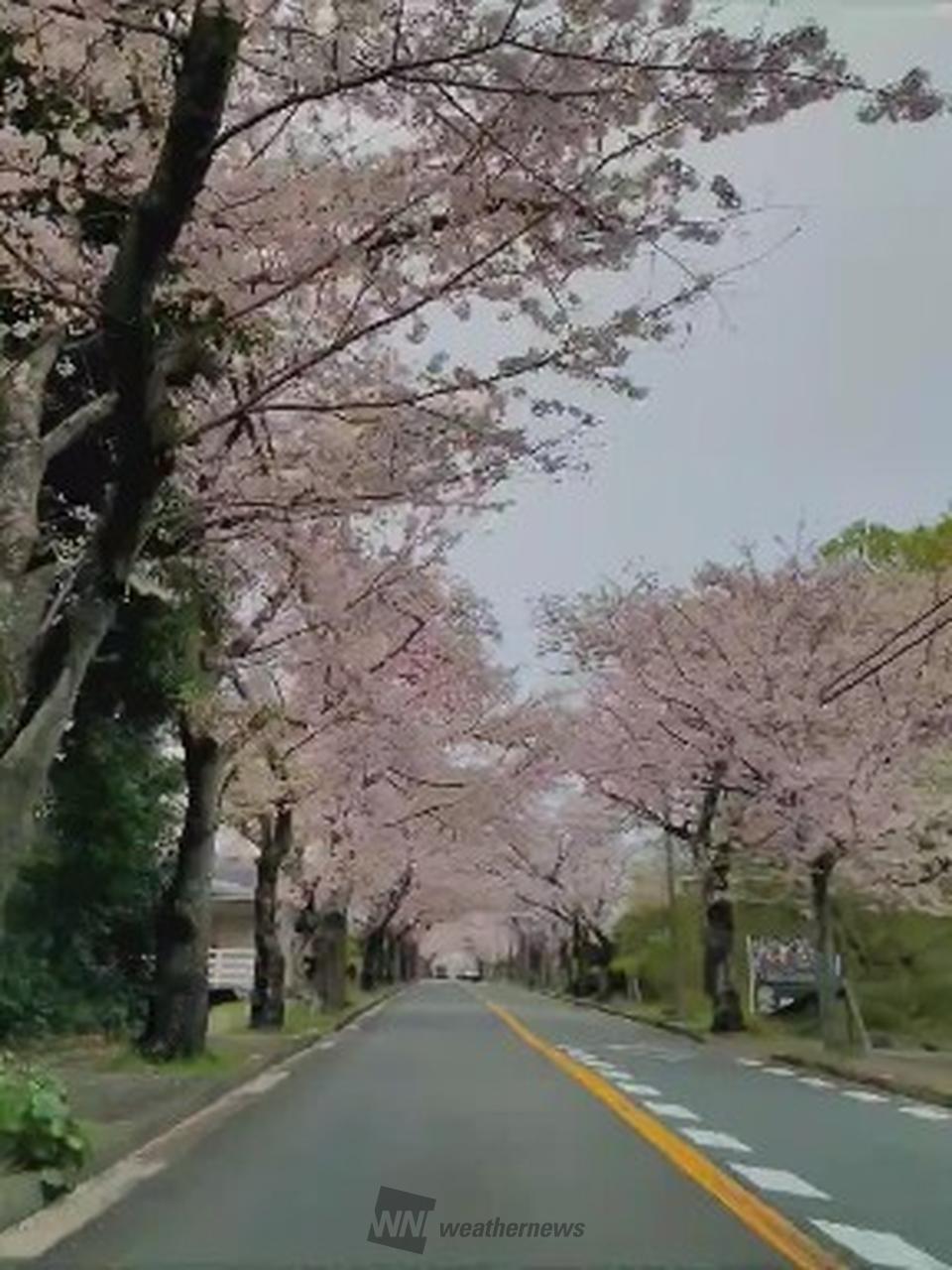 伊豆高原駅から約3kmにわたって続く桜並木は、約550本のソメイヨシノが植えられており、「桜のトンネル」「桜のアーチ」と呼ばれています。