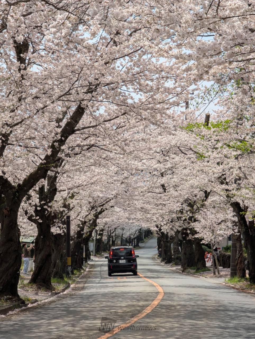 伊豆高原駅から約3kmにわたって続く桜並木は、約550本のソメイヨシノが植えられており、「桜のトンネル」「桜のアーチ」と呼ばれています。