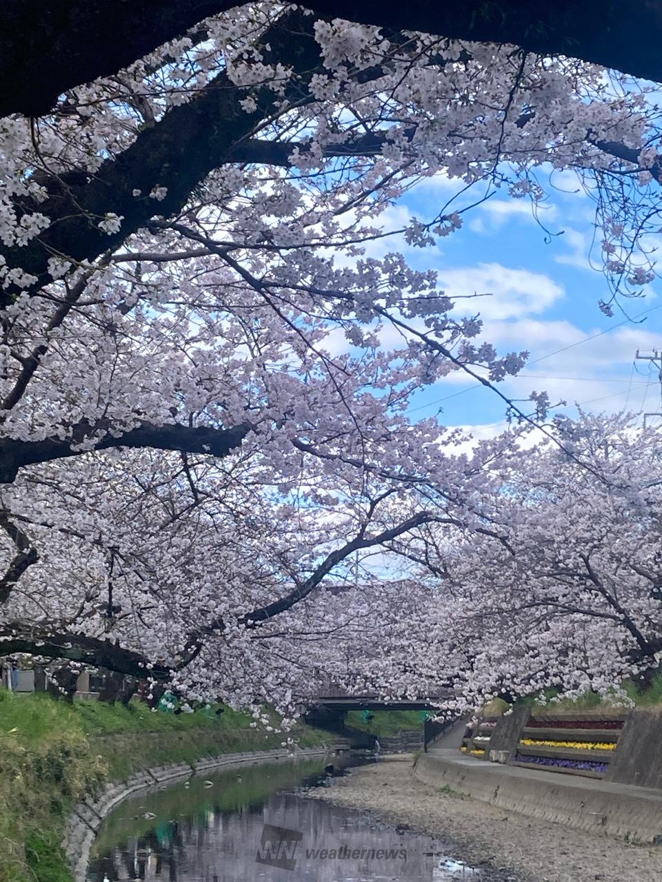 市内を流れる五条川沿約7.6kmにわたり、約1200本の桜が植えられており、満開を迎えると川面を覆うように咲き乱れます。