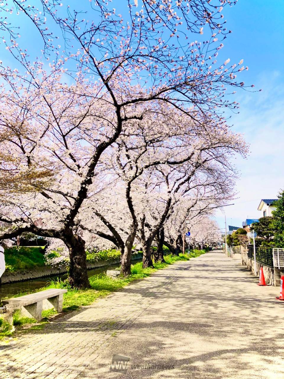 市内を流れる五条川沿約7.6kmにわたり、1300本を超える桜が植えられており、満開を迎えると川面を覆うように咲き乱れます。