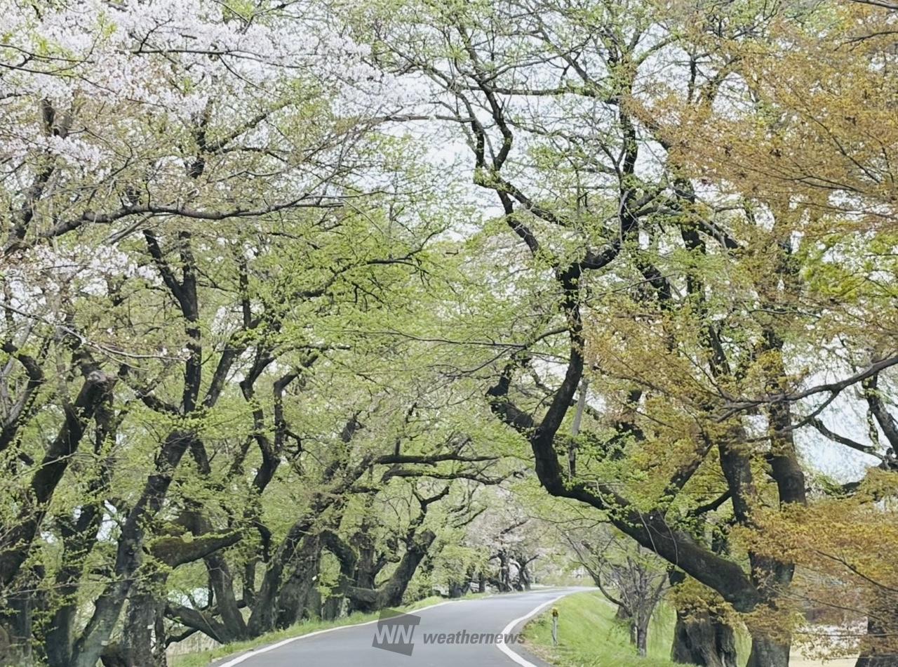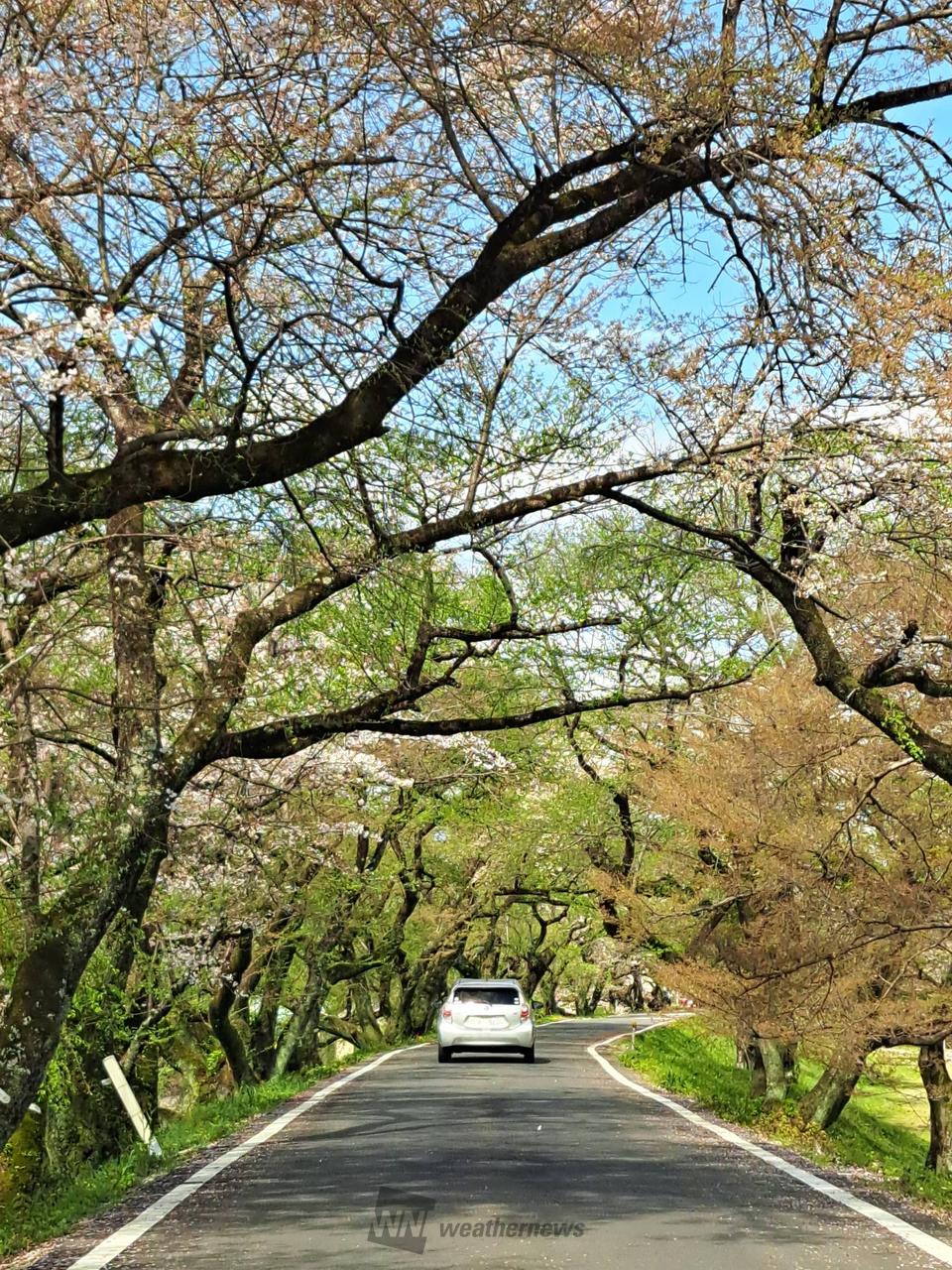 国の名勝天然記念物。明治18年(1885年)に堤防一帯に桜が植栽され、現在はヒガンザクラ、シダレザクラを中心とした古木が堤防を覆うように咲きます。