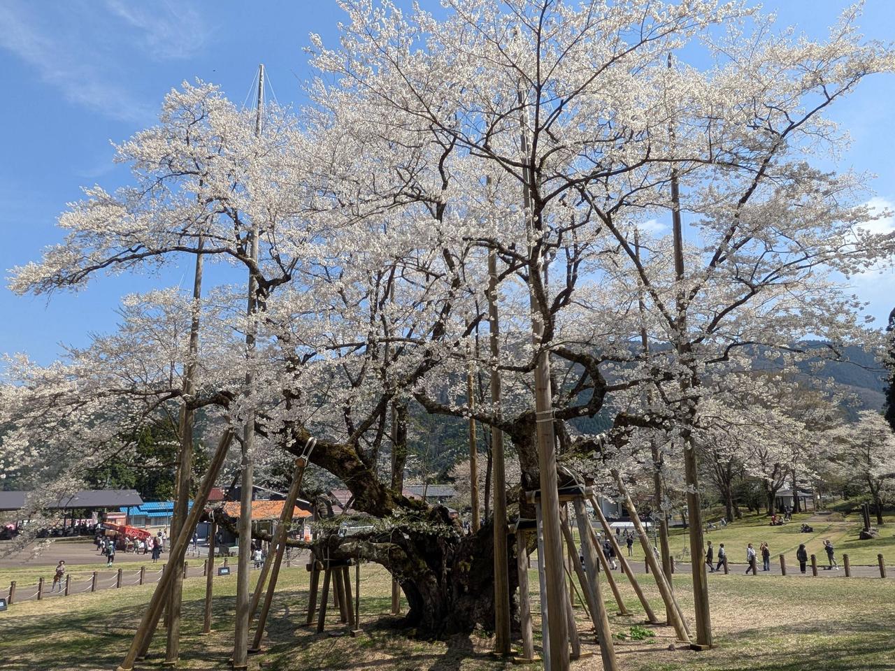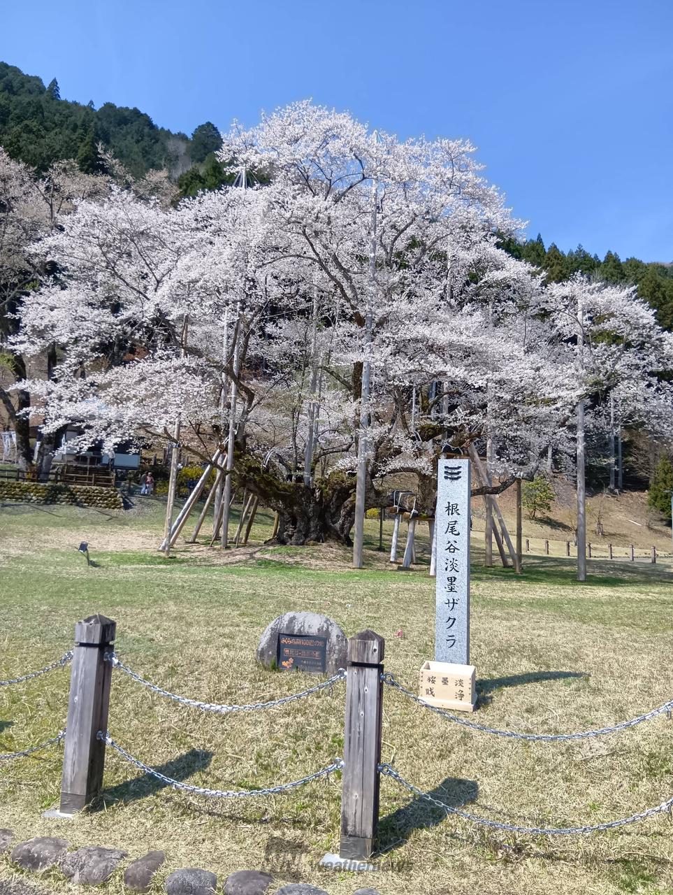 樹齢1500余年の淡墨桜は国指定の天然記念物で、幹や枝からは生命のエネルギーが感じられます。つぼみのときは薄いピンク色、満開になるとつややかな白色、散りぎわには特異の淡い墨色を帯びるのが特徴です。