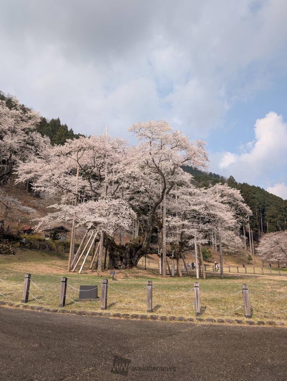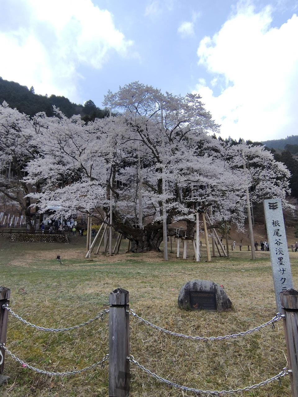 樹齢1500余年の淡墨桜は国指定の天然記念物で、幹や枝からは生命のエネルギーが感じられます。つぼみのときは薄いピンク色、満開になるとつややかな白色、散りぎわには特異の淡い墨色を帯びるのが特徴です。