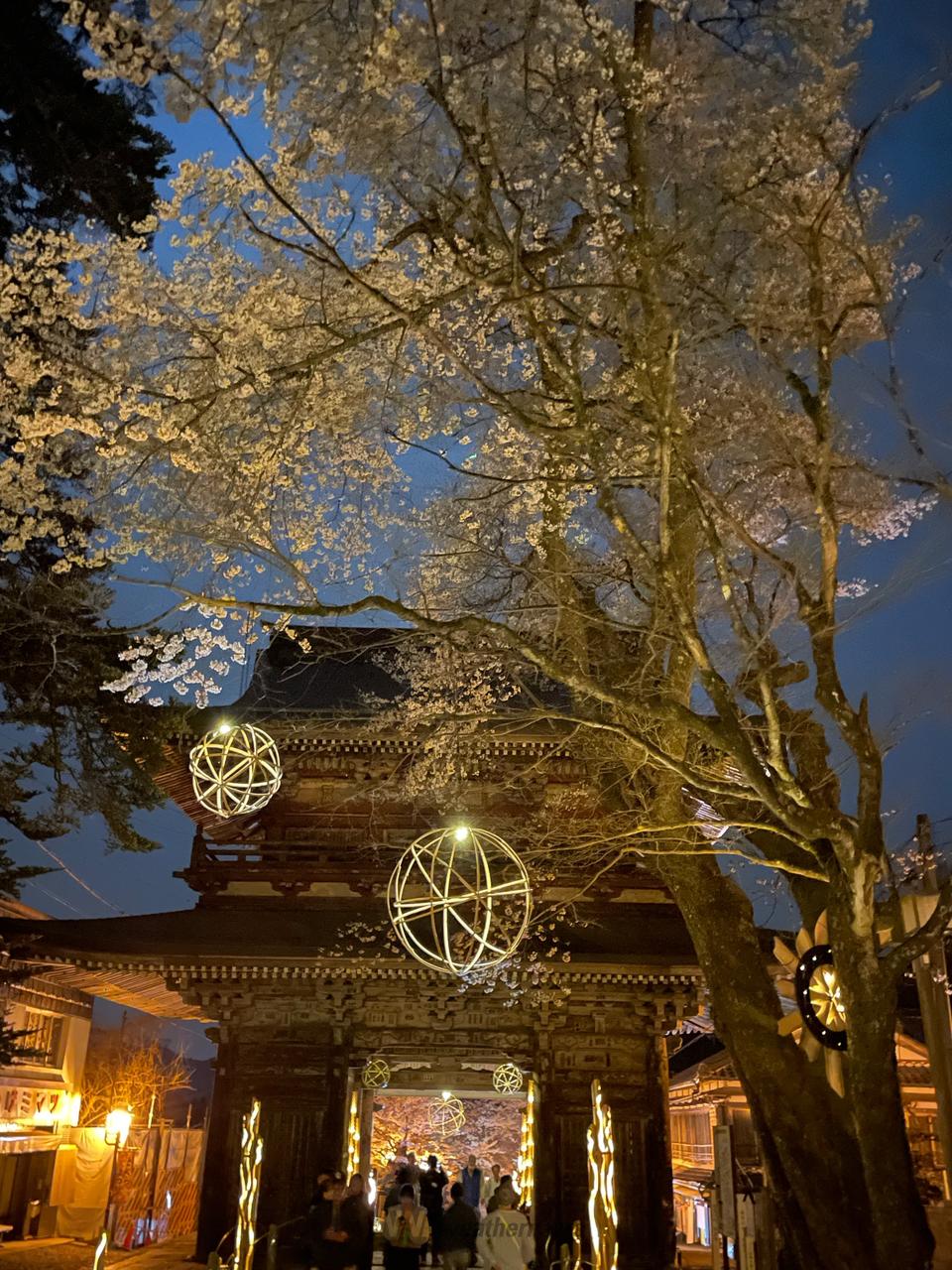 桜に包まれた参道が誘う西国33カ所霊場満願の地。旧名鉄谷汲駅から華厳寺まで桜の道が続きます。総門から仁王門までの参道には土産物店が軒を並べています。