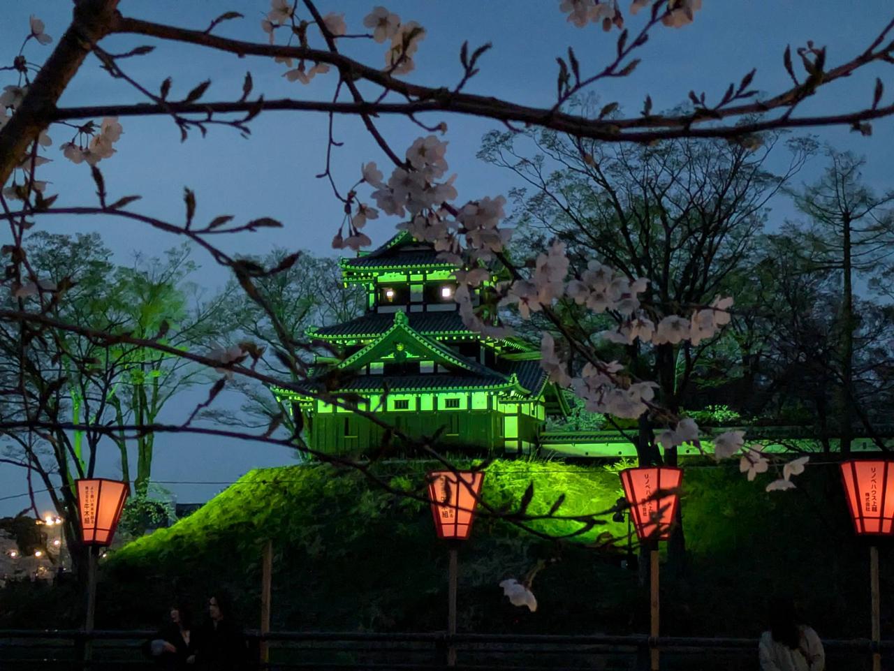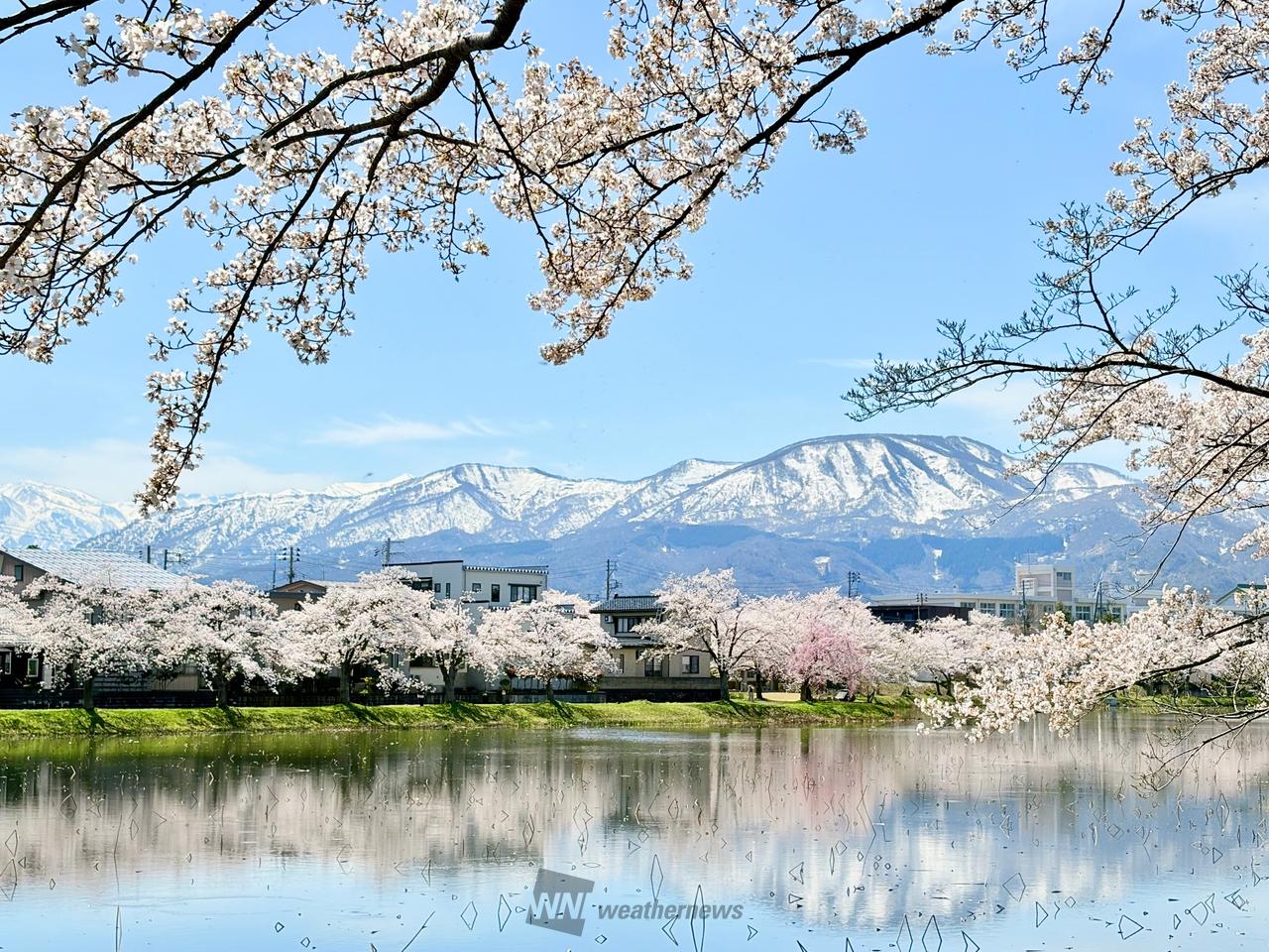 高田城址公園や、その周辺を含め約4000本の桜が咲き誇ります。また、ぼんぼりに照らされた美しい桜とライトアップされた高田城三重櫓が堀の水面に映える様が、日本三大夜桜の一つに数えらています。
