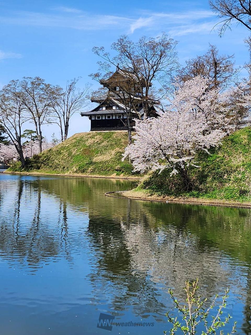 高田城址公園や、その周辺を含め約4000本の桜が咲き誇ります。また、ぼんぼりに照らされた美しい桜とライトアップされた高田城三重櫓が堀の水面に映える様が、日本三大夜桜の一つに数えらています。