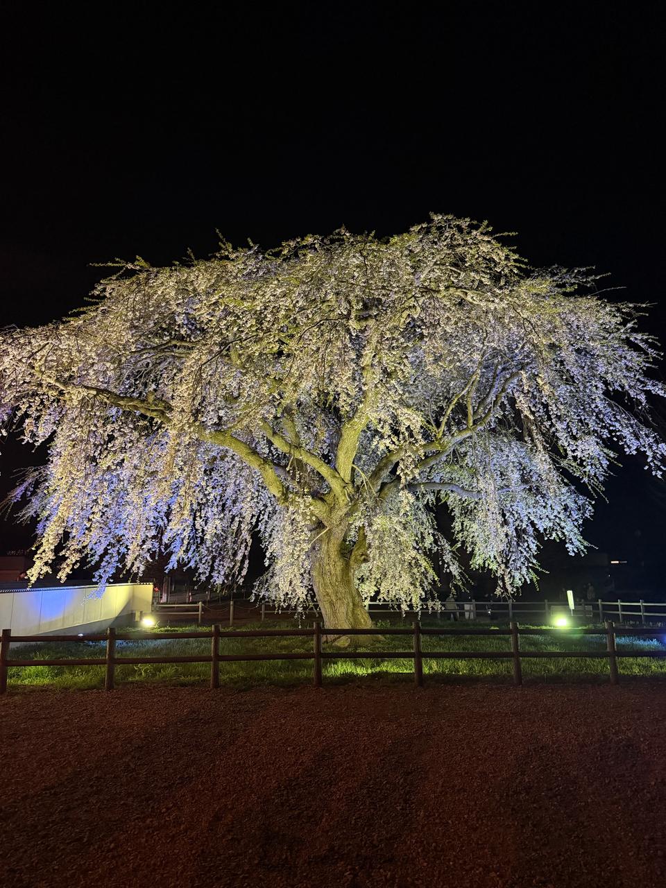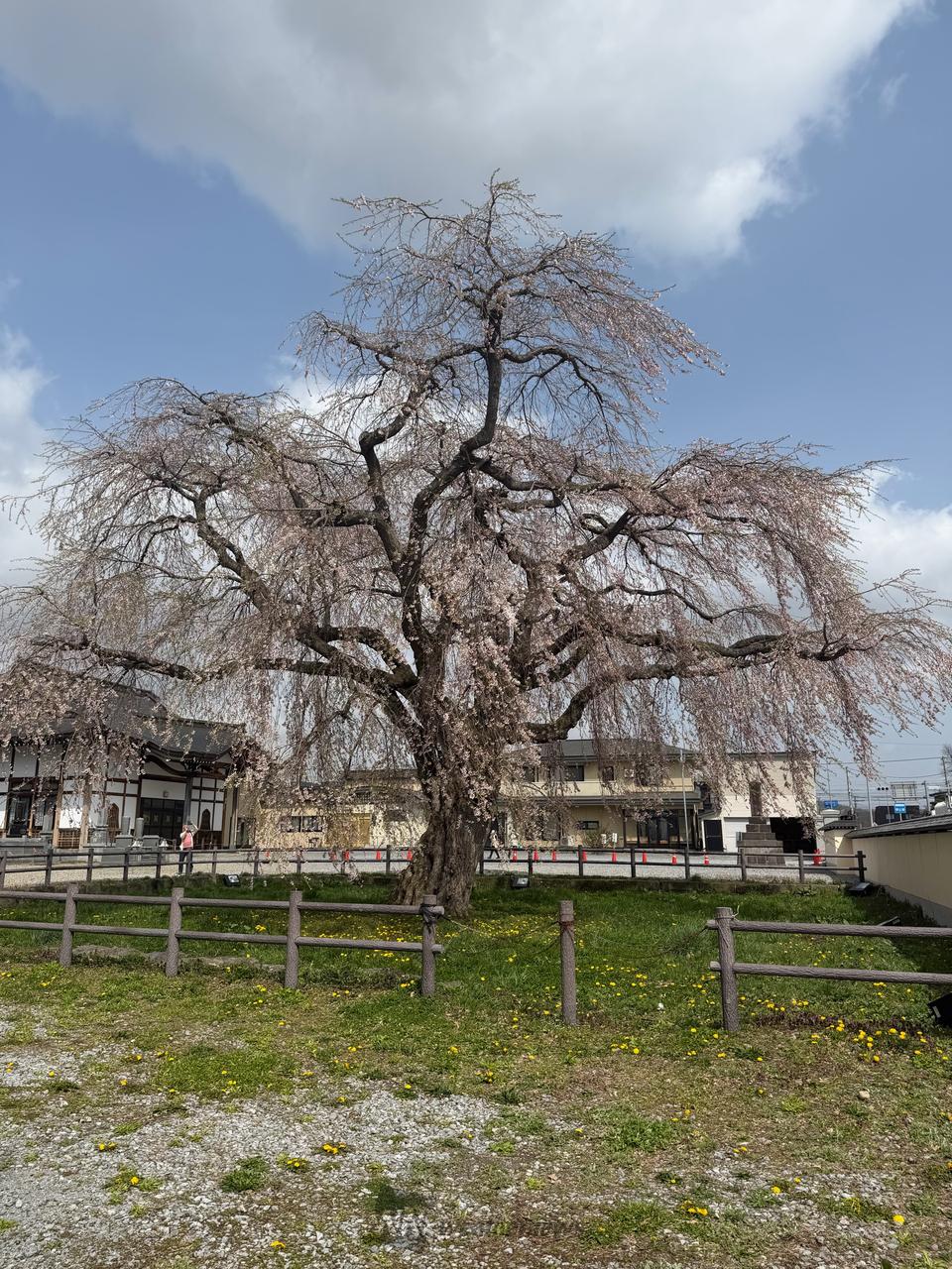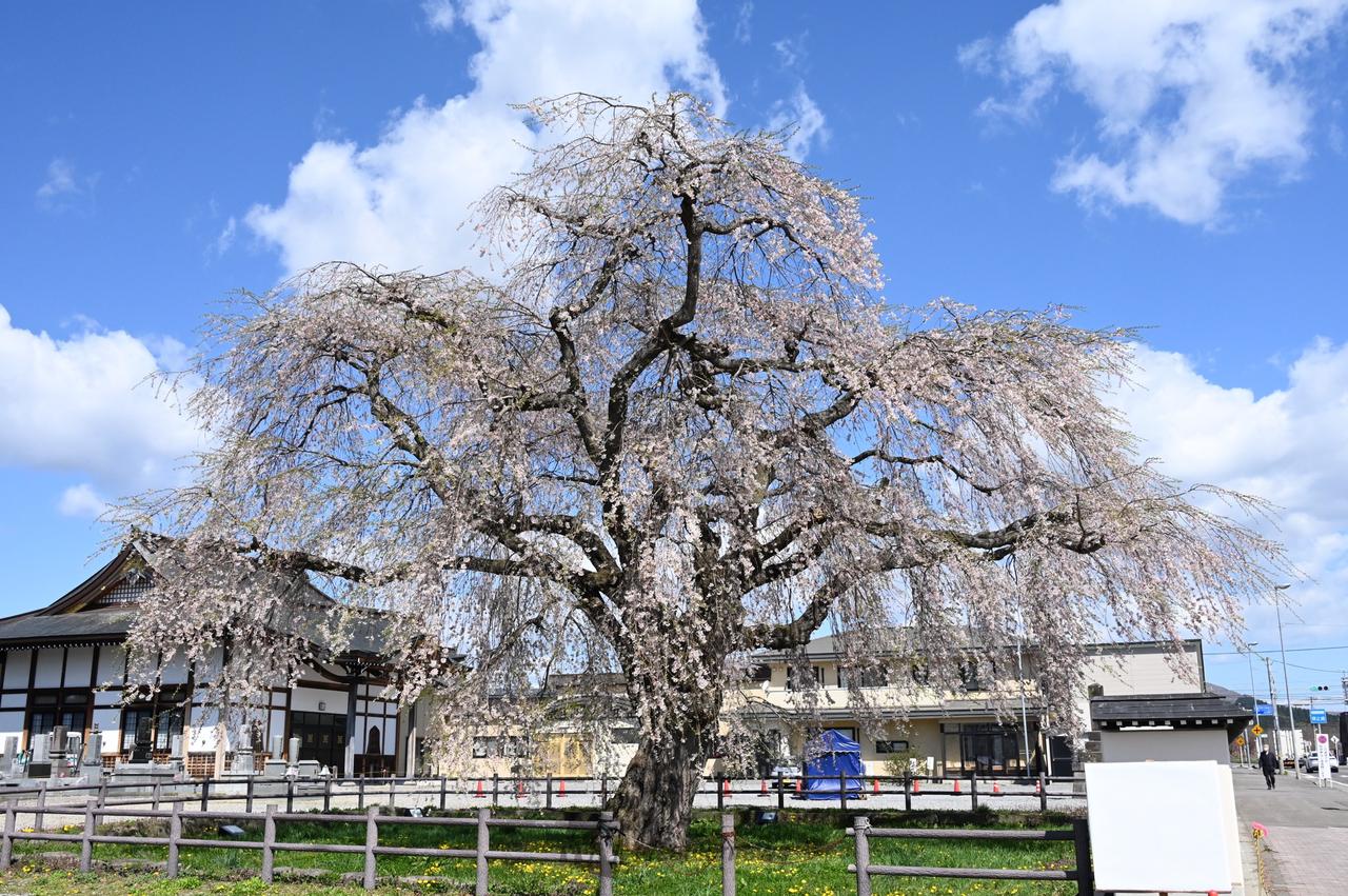 樹齢およそ300年と言われる道内最大級のしだれ桜。高さは約12mで枝振りが大変良く、垂れ下がった枝いっぱいに花がつくと大変見応えがあります。