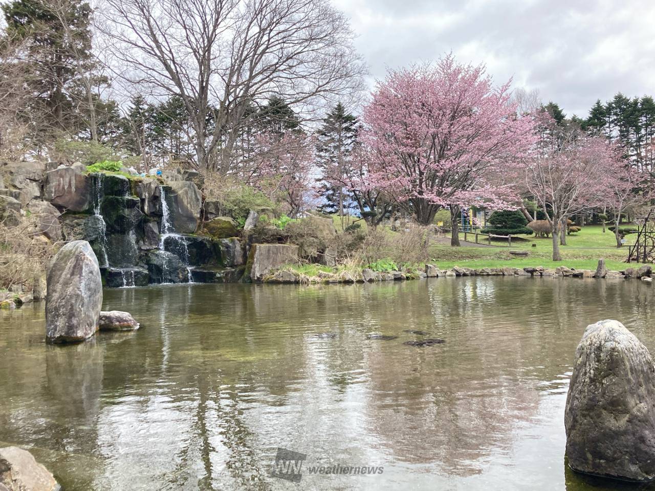 八雲町のさらんべ公園は、八雲町市街地にある4.2万平方メートルの敷地を有する町民の憩いの公園。園内には、遊具のほか、せせらぎ水路や親水池。無料のパークゴルフ練習場や人魚姫が横たわるマーメイド広場などがある。5月上旬から中旬にはソメイヨシノやエゾヤマザクラなど、約180本が咲く。満開の桜の下、春を求めた花見客で賑わう。