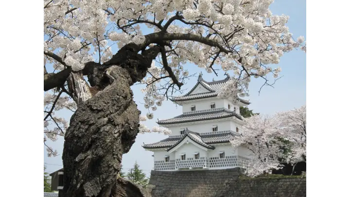 日本100名城「新発田城」すぐ横に位置する公園で、お堀沿いに整備された桜や園内各所に咲く桜が楽しめます。切込みはぎと呼ばれる美しい石垣や国の重要文化財に指定されている「表門」「旧二の丸隅櫓」と桜の共演は必見です。広大な公園内には芝生が敷かれており、ゆっくりとお花見するにはぴったり。開花時期に合わせて行われる新発田城のライトアップやぼんぼりの明かりが幻想的な雰囲気を演出します。