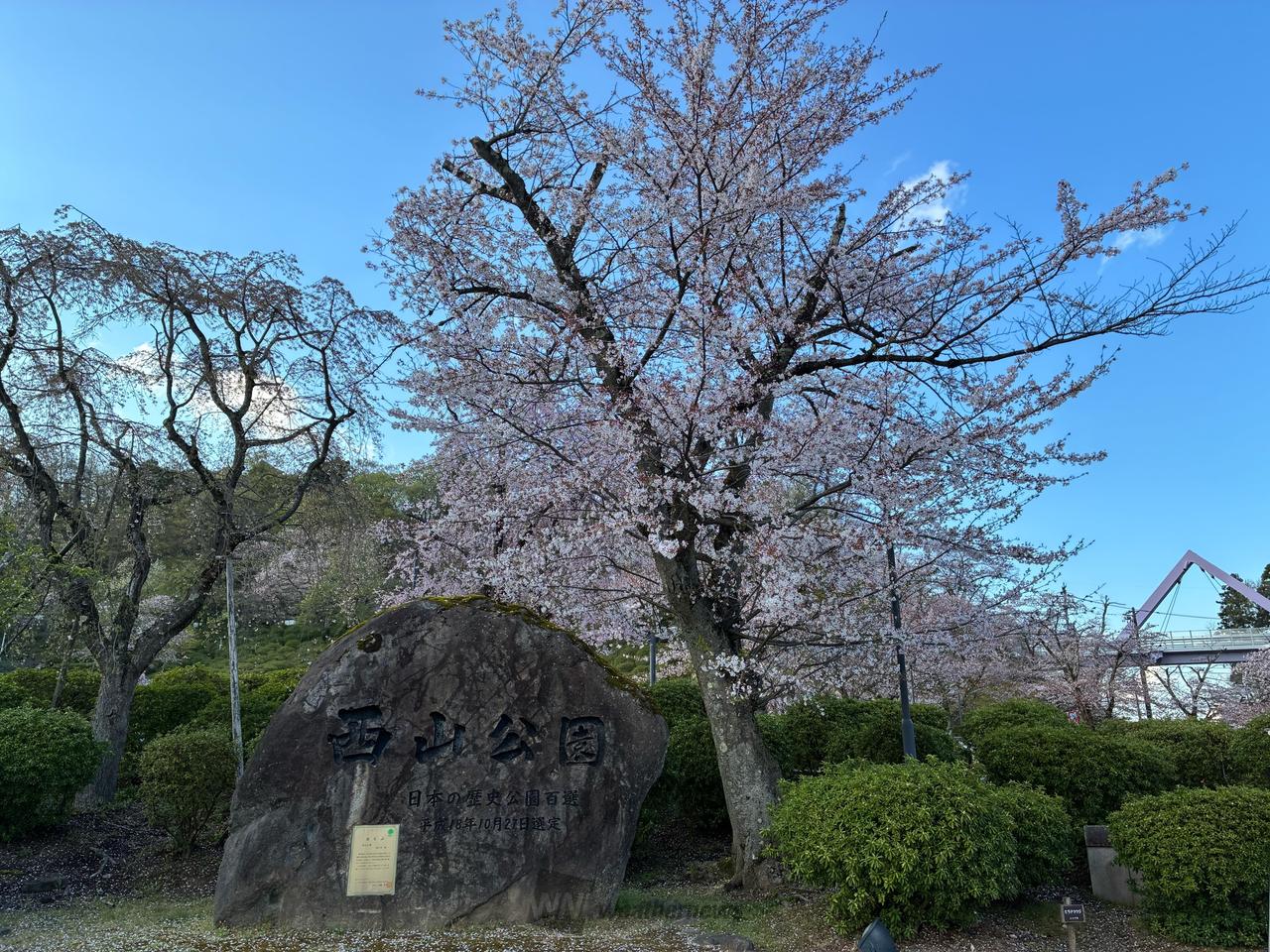 古くから花の名所として知られ約1000本の桜が咲き誇ります。桜の後に咲くツツジは日本海側随一の規模を誇り、つつじ祭りも行われます。日本庭園や芝生広場、西山動物園など見所もたくさんあり、公園には道の駅が併設され鯖江のお土産も揃えております。