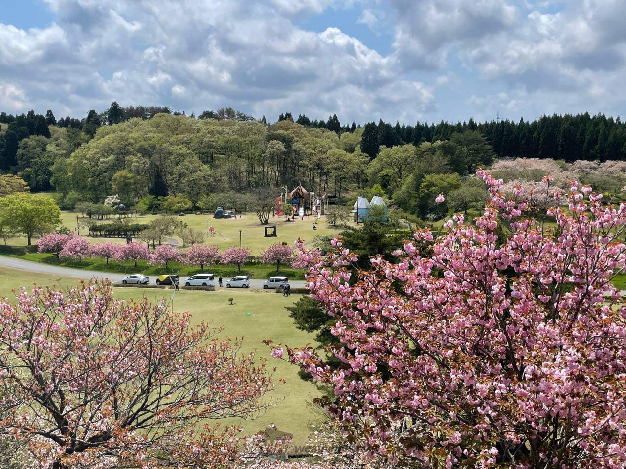 昭和47年日本各地から集められた桜200種2000本が植樹された公園で、全国に数か所しかない学術的にも貴重な公園です。バラ園やツツジ等が咲く花木園があり、また、桜の森彫刻コンクールで入選した作品が41基展示され、桜と彫刻の公園として四季を通じて親しまれています。