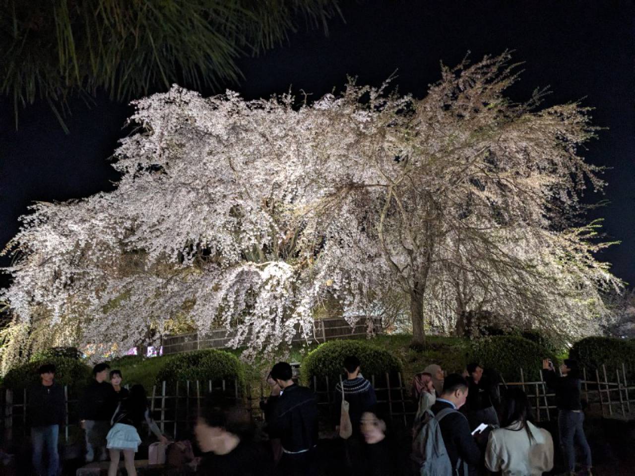 毎年3月下旬~4月上旬頃に、園内中央の「祇園のしだれ桜」のライトアップがあります。(日没~24:00)※コロナウイルスの感染拡大状況により、中止や中断となる場合があります。