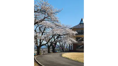 ①公園頂上の桜並木②公園頂上の展望台を背景にした桜