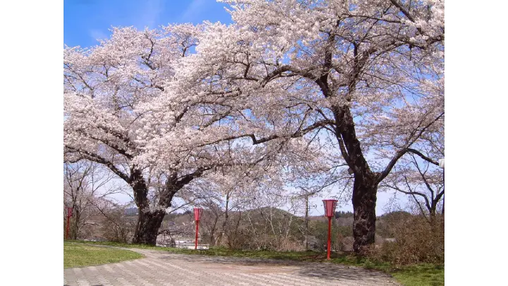 千厩町を見下ろす舘山公園は桜とあわせて街が一望出来る場所にあります。約100本の桜はソメイヨシノ・シダレザクラ・ヤエザクラなど数種類が順に咲き始めるので、お花見の時期が長く楽しめます。