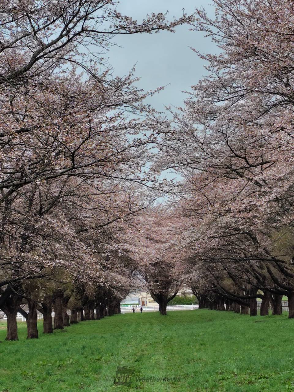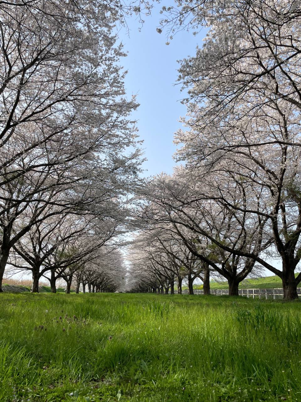 桜の時期のみ入ることができる北上川沿いの桜並木。競馬場のメインスタンドの向こう正面に位置し、電線や建物など空を遮るものが一切なく桜のトンネルと芝の絨毯の美しい景色が広がります。桜とともに競馬場を走る馬たちの姿を見ることもできます。