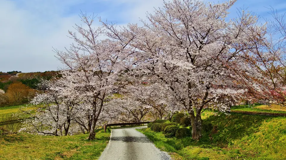Ark館ヶ森は、100ヘクタールの広大な敷地に、季節の花々や様々な動物とのふれあいが楽しめる牧場です。春のハイライトは「チューリップと桜の共演」そして「桜のトンネル」です。「食といのちと自然」をテーマとした牧場で、桜を楽しみ牧場産の食事を楽しみ、春を満喫することができます。