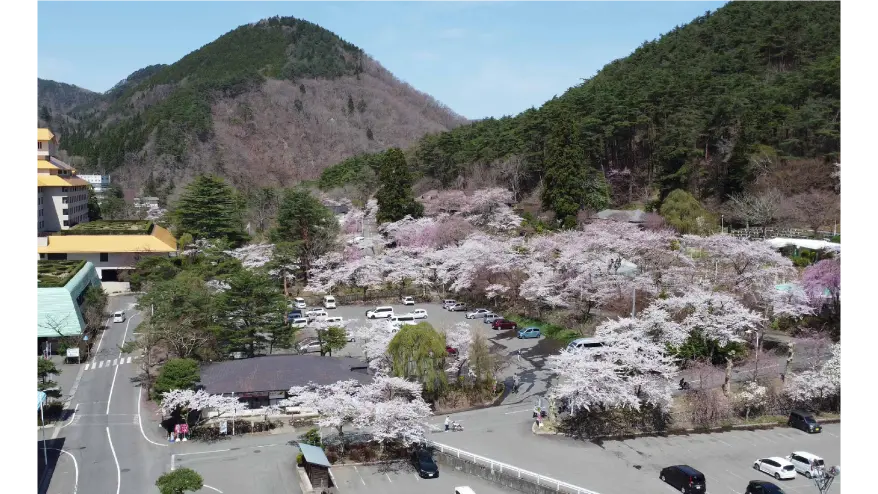 県内有数の桜の名所である花巻温泉。園内には約500本のソメイヨシノやしだれ桜が立ち並び、客室やバラ園から一望できる満開の桜並木は圧巻です。花巻市内より少し遅れて咲きはじめ、さらに花巻温泉の園内でも開花の時期が違い、長く楽しめるのが特徴です。