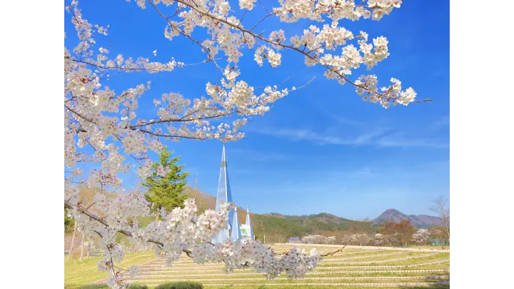 七ヶ宿ダムの湖畔にある28haの広大な公園でグラウンドゴルフ等が楽しめる他、春には2000本の桜が咲き誇ります。隣接して道の駅と歴史資料館があり、家族でのんびり過ごせるお花見スポットです。