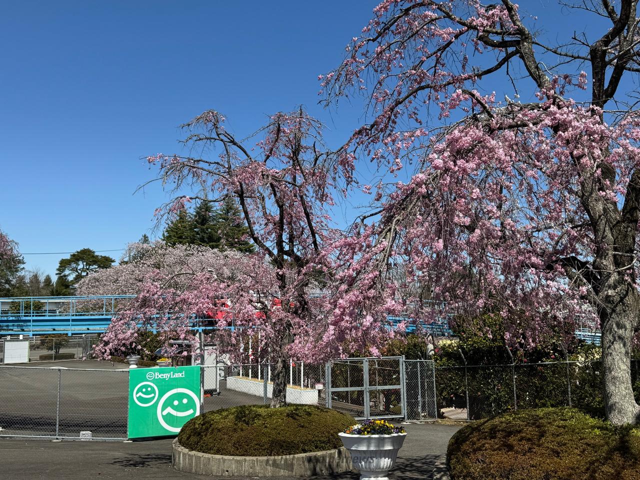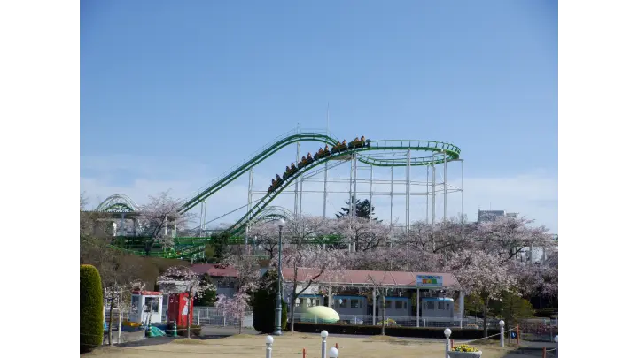 園内各所に植樹されており、いろんな所で楽しめます。スカイジェットでの桜トンネル、コークスクリュー付近の通り抜けも、オススメです。