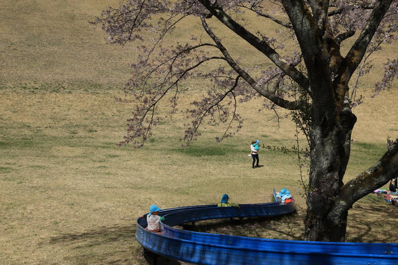 加護坊山の斜面に桜が咲くため、上から見下ろすように撮影すると、場所によっては桜のじゅうたんのような写真が撮れます。 また、桜の下では360°桜に囲まれたような写真が撮れるスポットもあります。 ソメイヨシノの見頃が過ぎる頃には八重桜が咲き始め、青空とのコラボレーションも楽しめます。 夜はピンク色にライトアップされ、幻想的な雰囲気に。ぜひ夜もお越しください。