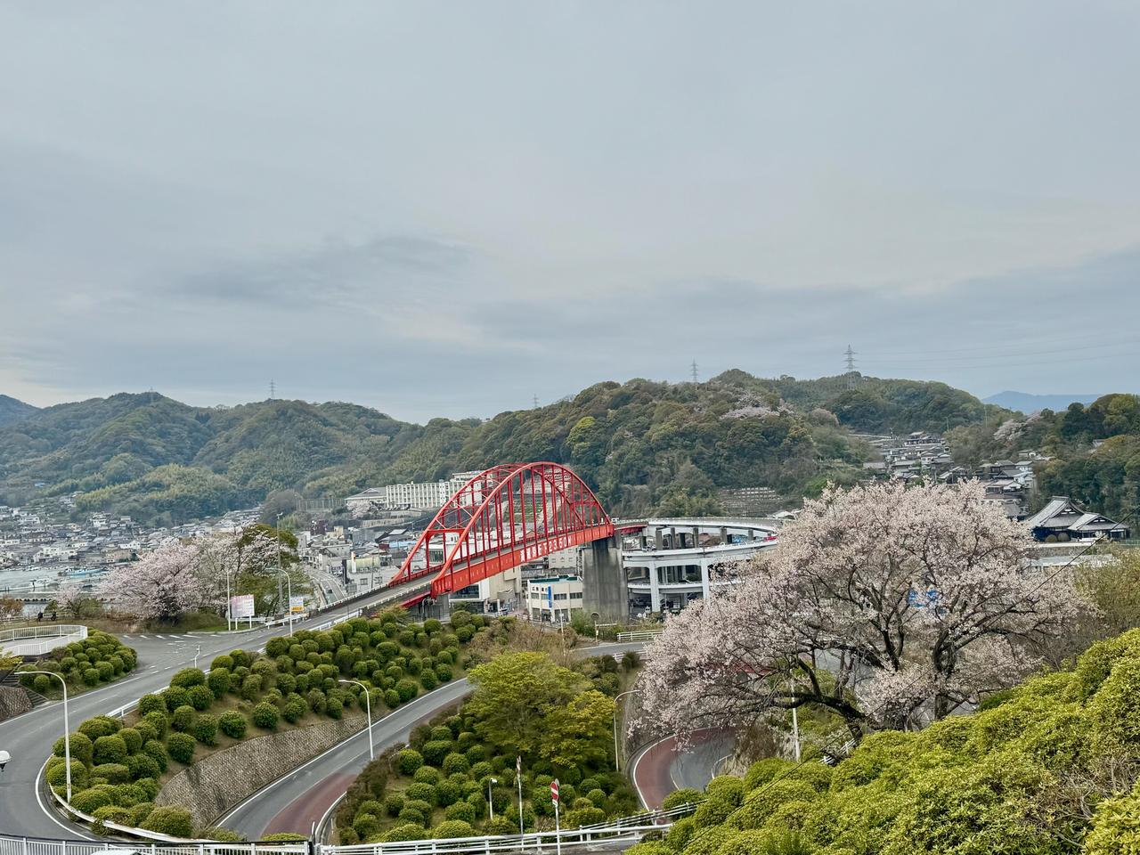 音戸の瀬戸は、平清盛が西の海に沈もうとする夕日を扇で招き返し、一日で切り開いたという「日招き伝説」が残る名勝地で、この瀬戸を望む音戸の瀬戸公園には約2300本の桜が咲き、海の音と橋の紅との彩りが見事です。第二音戸大橋や、第三音戸大橋(遊歩道)からも絶景を望むことができます。