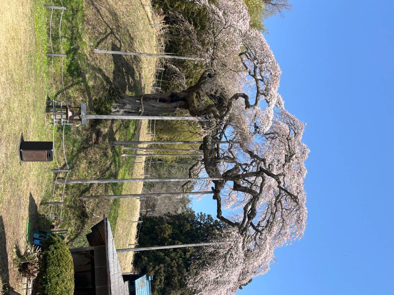 徳川光圀公によるお手植えの桜といわれ、地元では俗に「下大倉(しもおおくら)の桜」と呼ばれています。古くから地元の人々は、その蕾の膨らみや花の咲き具合を見て苗代つくりや田植えの準備を始めてきました。現在でも、農業暦に深い関わりを持つものとして地域に広く親しまれています。樹は斜面中腹に生育しているため、生育地を囲むように設けられた歩道から見上げて又は見下ろして樹冠全景を観賞することができ、開花期間中には大勢の花見客が訪れるほか、ライトアップや桜祭りなども実施されます。樹齢は300年をゆうに超えると推定されます。