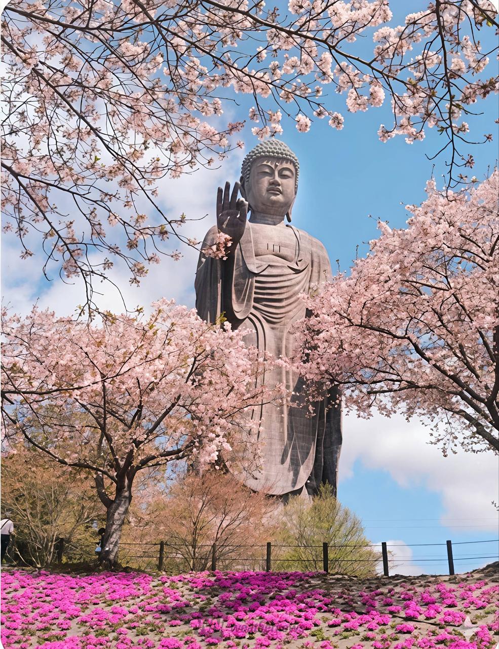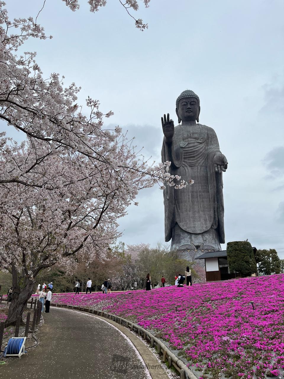 大仏様の足元には桜だけではなく、芝桜も咲き始めますのでタイミングが良ければ桜&芝桜のコラボレーションが楽しめます。大仏様の左側に桜芝桜が一面に広がり、圧巻です!大仏様と桜芝桜が一緒に見られるのは牛久大仏だけですのでこの機会に是非ご来園下さい。