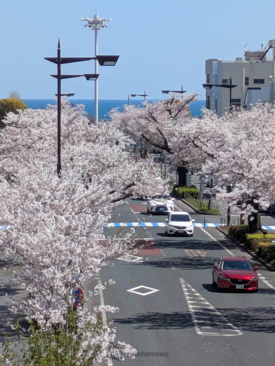 JR日立駅中央口から国道6号まで続く桜並木。約110本のソメイヨシノが咲き誇り、訪れる人を歓迎します。市内のかみね公園とともに、日本の「さくら名所100選」に選ばれています。