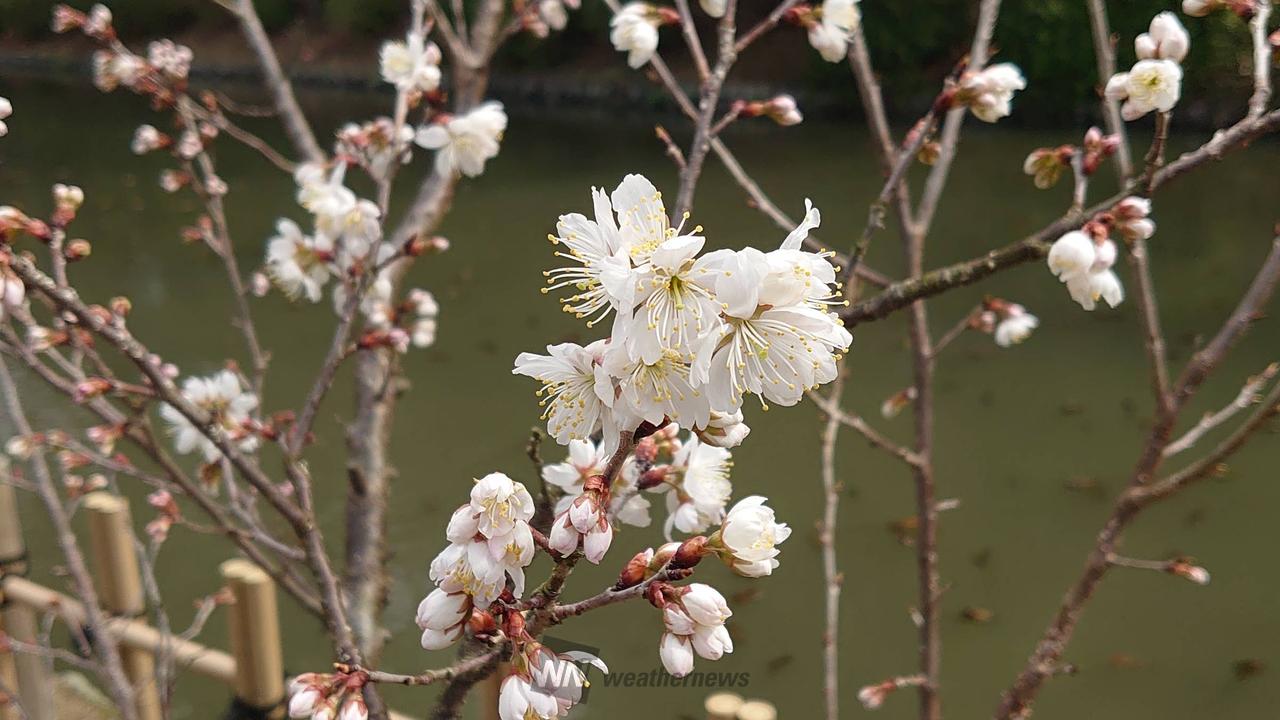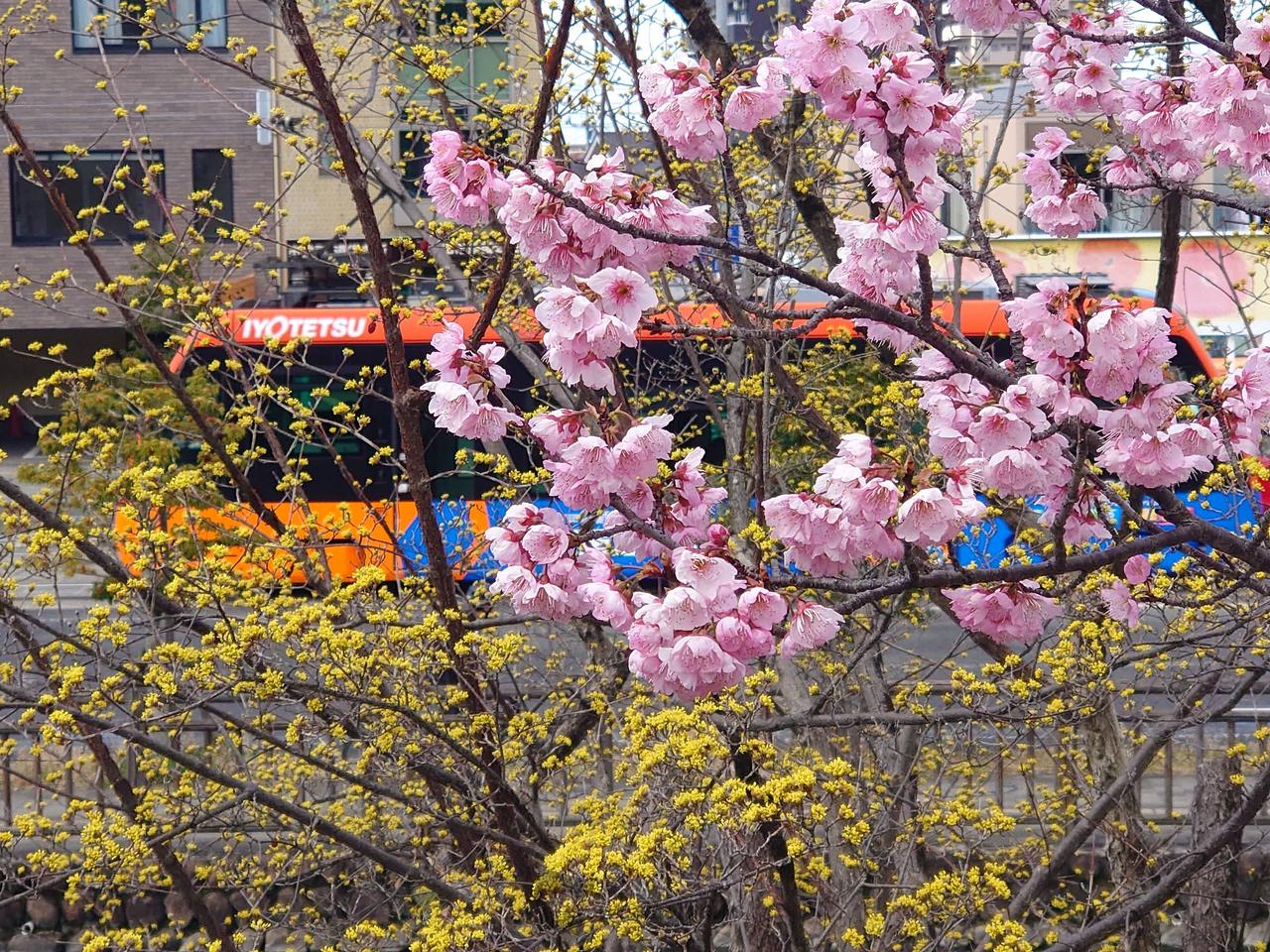 ツバキカンザクラ(約20本)が3月上旬から咲き始め、桜の期間を長く楽しめます。桜見物のほか、復元された湯築城跡の散策もオススメです。