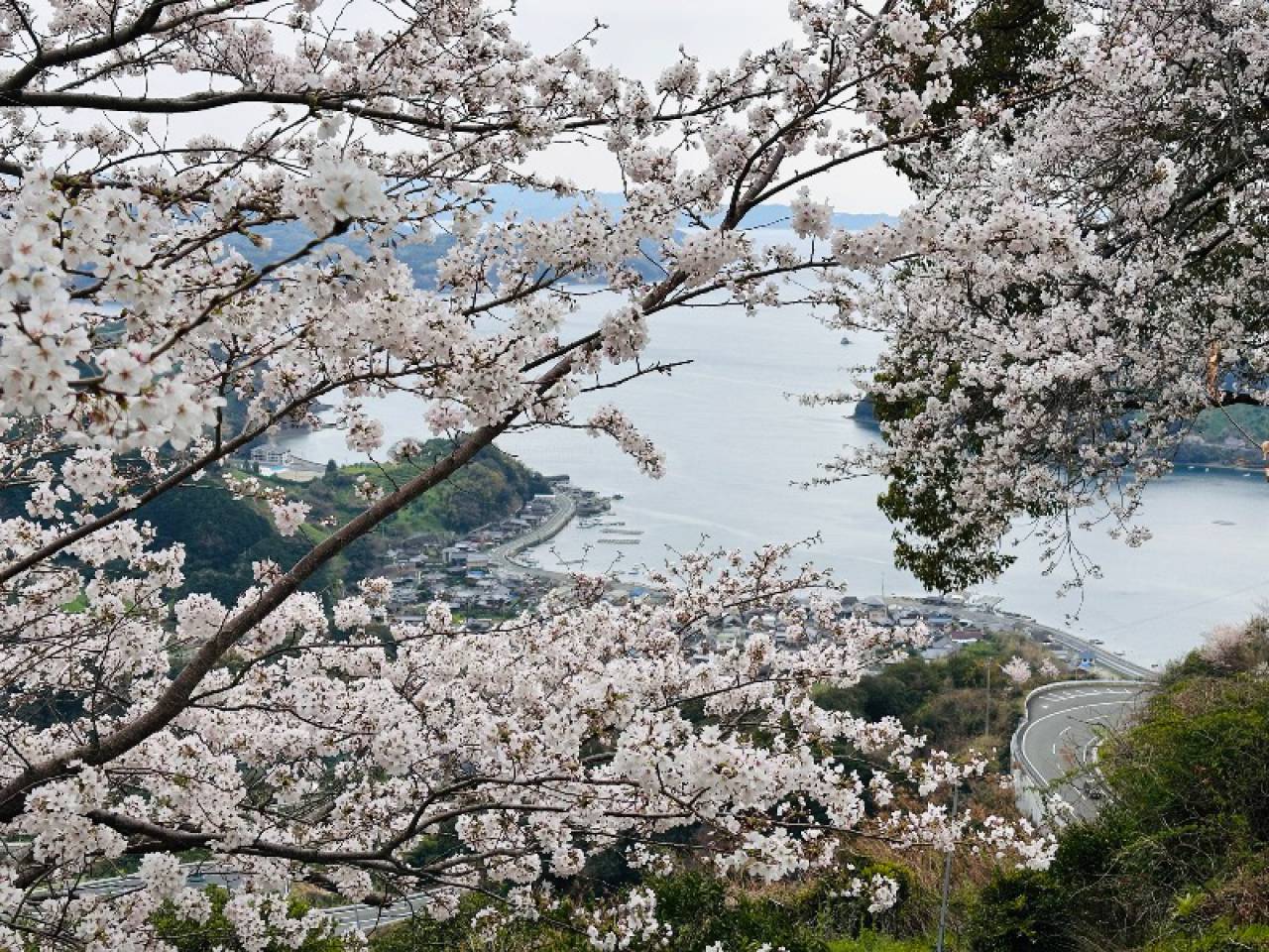 野福峠はリアス海岸の美しい風景を望むドライブコースで、約7kmのつづら折りの沿道にソメイヨシノが咲く。春には、宇和海と桜が調和して更に美しい。また、約400本の桜並木と全面に広がる宇和海とみかん畑の調和が絶景です。