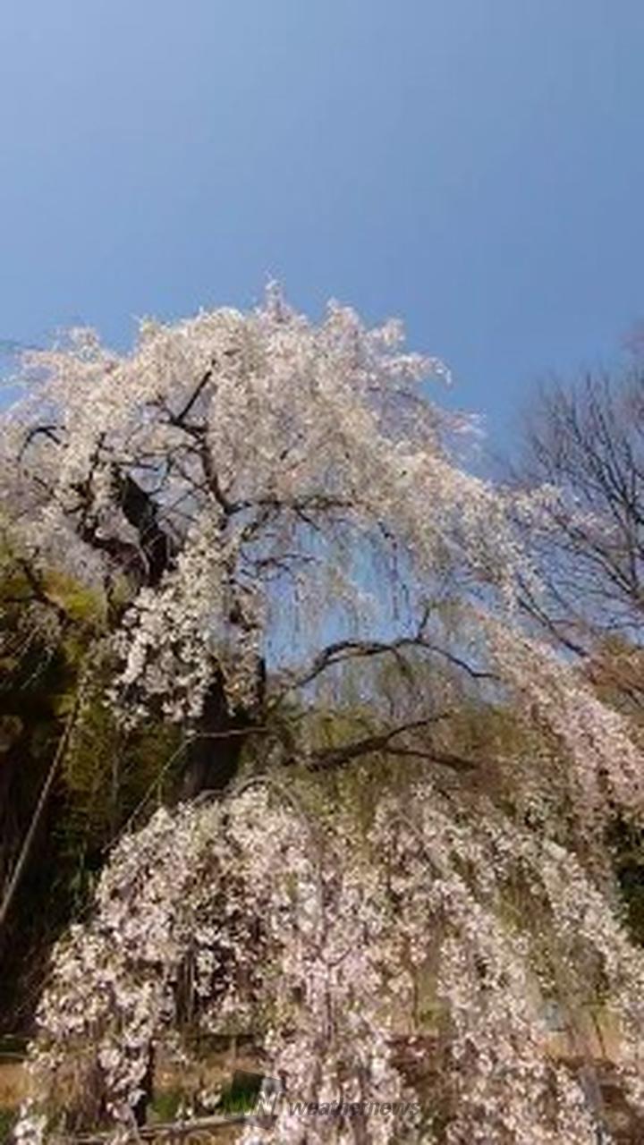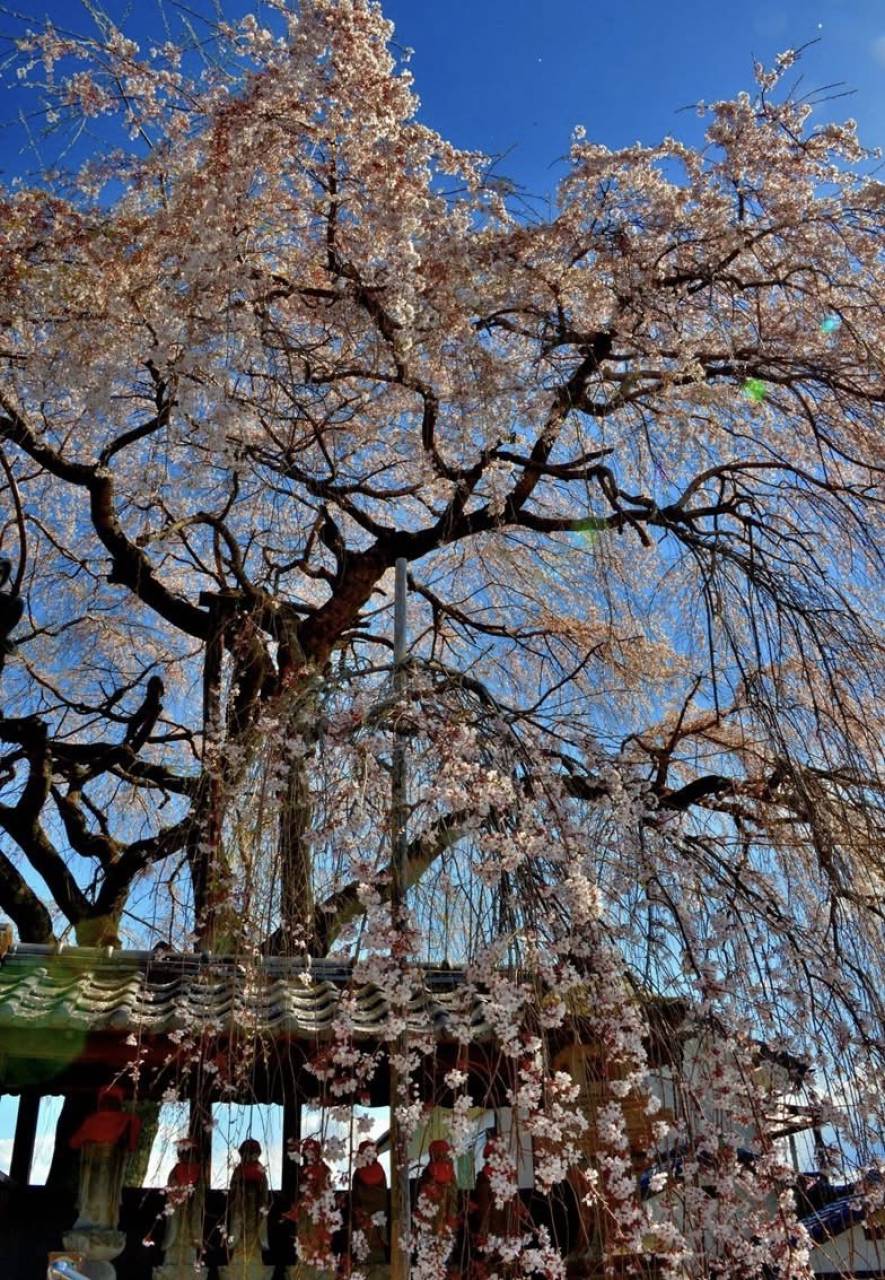 普門寺のしだれ桜は、エドヒガンザクラの変種でイトザクラとも呼ばれています。高さ11.5m、推定樹齢約190年とされるこのしだれ桜は、毎年3月中、下旬ごろ小振りで、可憐な花を無数に咲かせます。