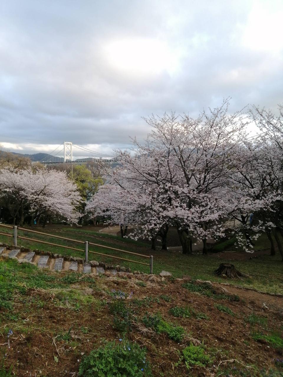 園内の桜と関門海峡