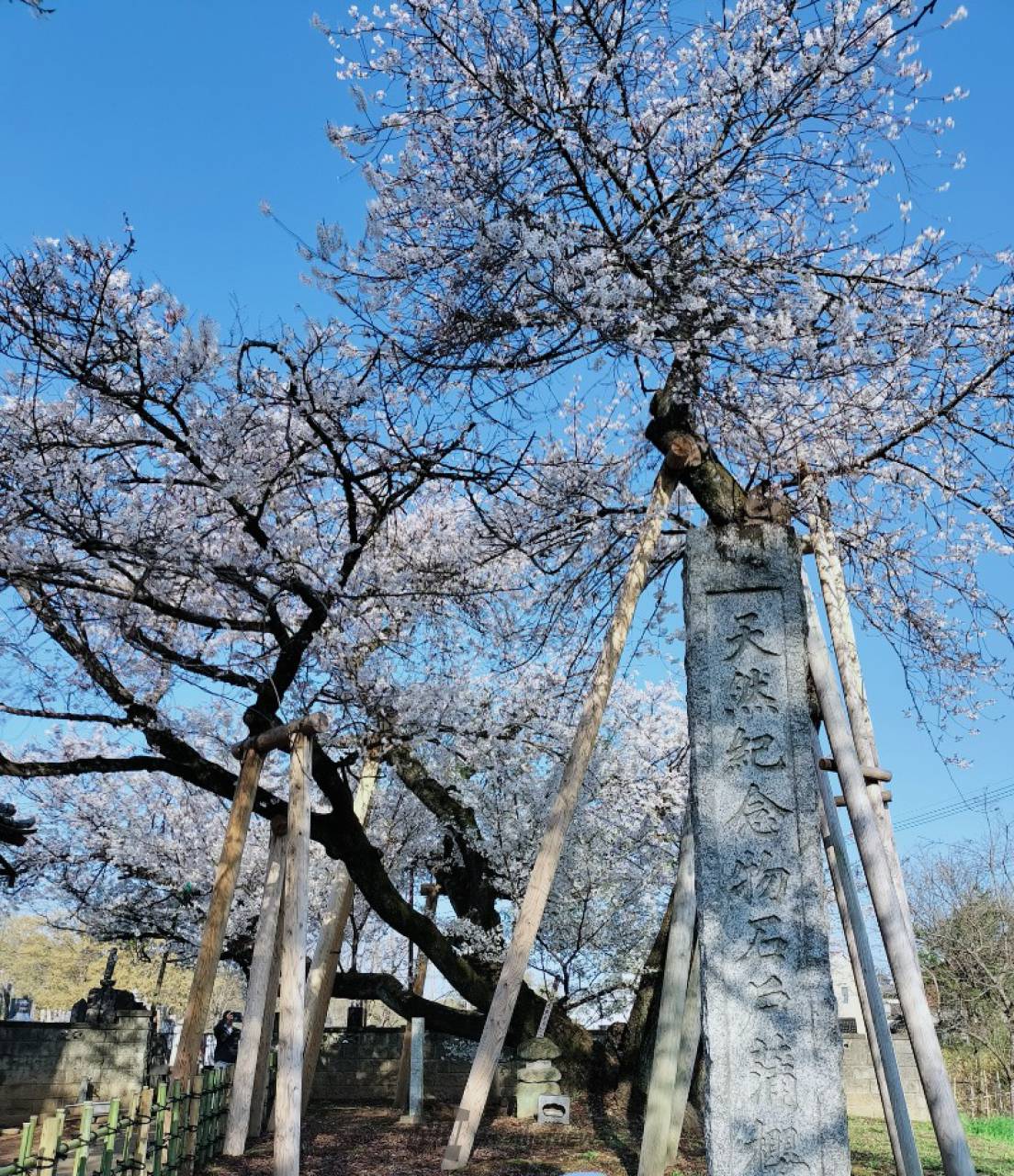 日本五大桜の1つに数えられる国指定天然記念物の桜。樹齢は約800年と伝えられ、樹種は「カバザクラ」という世界でただ1本の品種。「カバザクラ」の由来は、源頼朝の弟「蒲冠者 源範頼」の伝承にちなんでつけられた。範頼がついていた杖が根づき、この桜になったと伝えられている。枯死の危機を乗り越え、現在も白く可憐な花を咲かせる。令和4年10月12日に国指定天然記念物登録100周年を迎えた。