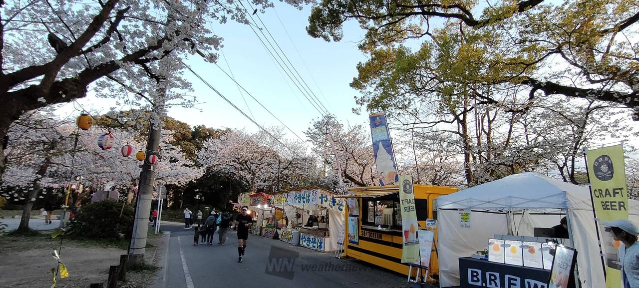 約1300本の桜が植えられ、展望台からは博多湾などが一望できます。「さくら名所100選」に選ばれた風情ある丘陵地の公園です。BBQ等火気使用、カラオケ、周りの方の迷惑になるような行為は禁止です。お花見期間中は終日車両進入不可です。