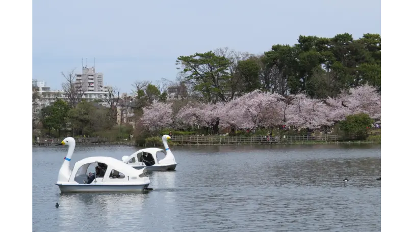 ボート(スワンボート・サイクルボート・手漕ぎボート)、弁天島、名馬池月の像、池月橋、勝海舟夫妻墓所、西郷隆盛留魂詩碑、徳富蘇峰詩碑、妙福寺、千束八幡神社、勝海舟記念館
