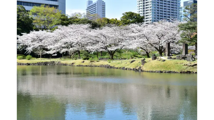 JR浜松町駅北口1分の旧芝離宮恩賜庭園は、東京に残る江戸初期の大名庭園のひとつです。園内はソメイヨシノを中心に28本の桜があり、3月下旬から4月上旬にかけて見頃を迎えます。歴史ある大名庭園の中で風靡な桜の景をお楽しみください。