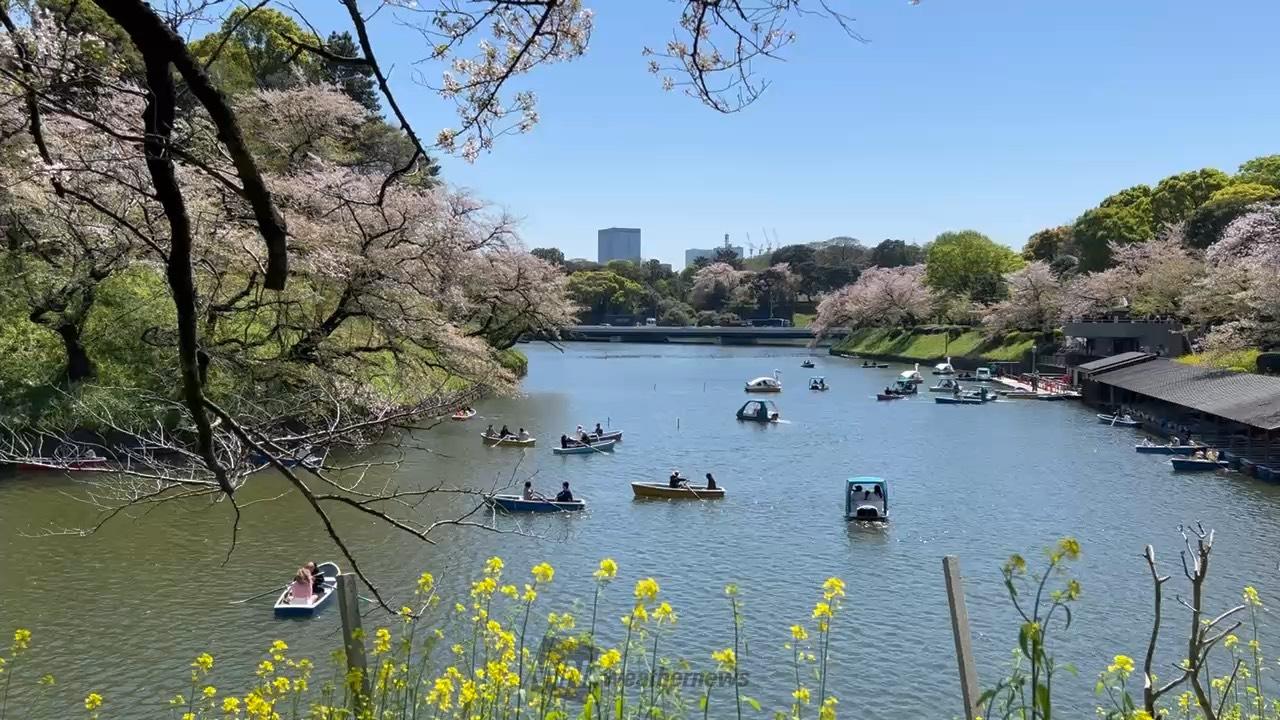 約700mの遊歩道に約230本(対岸を含む)のソメイヨシノをはじめとする桜が見事に咲きます。近くには区営ボート場があり、濠から見上げる桜は格別です。