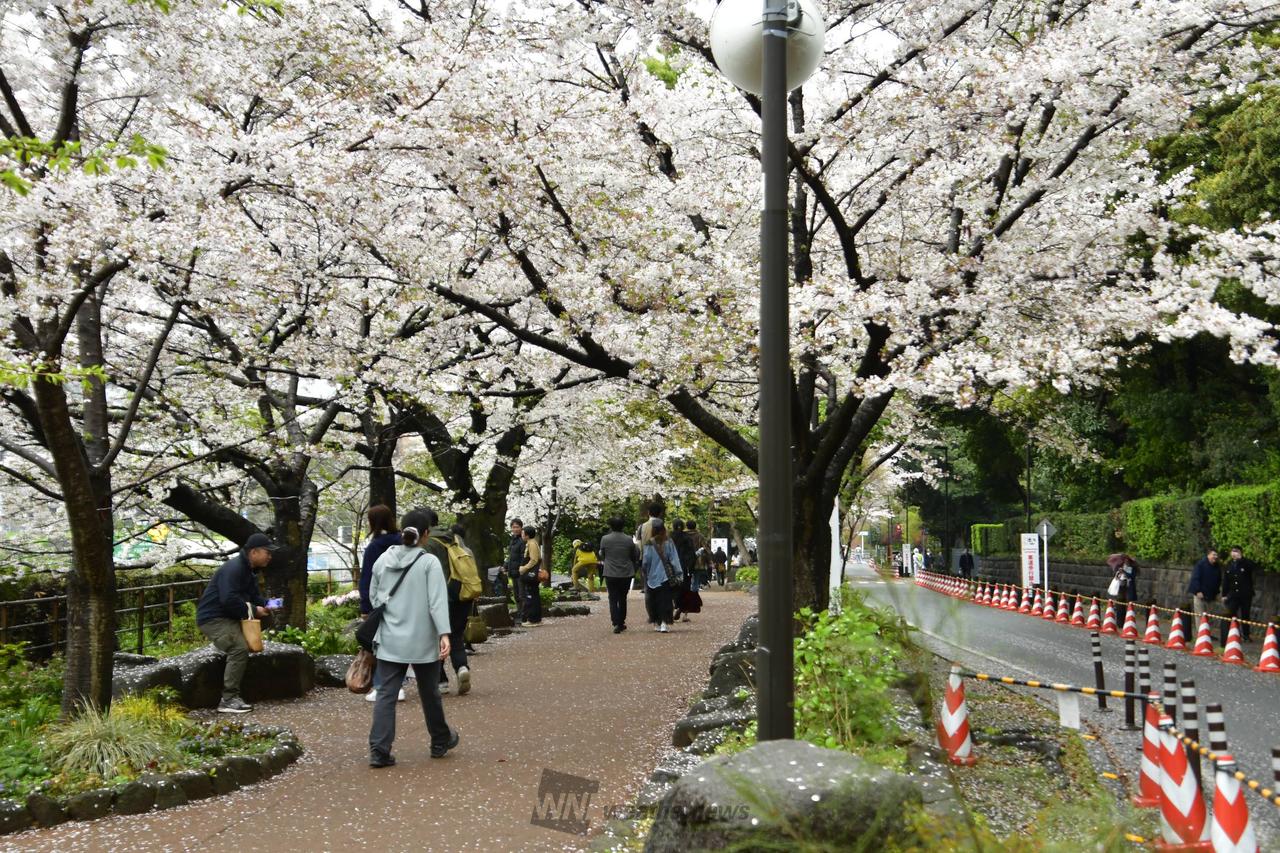 約700mの遊歩道に約230本(対岸を含む)のソメイヨシノをはじめとする桜が見事に咲きます。近くには区営ボート場があり、濠から見上げる桜は格別です。