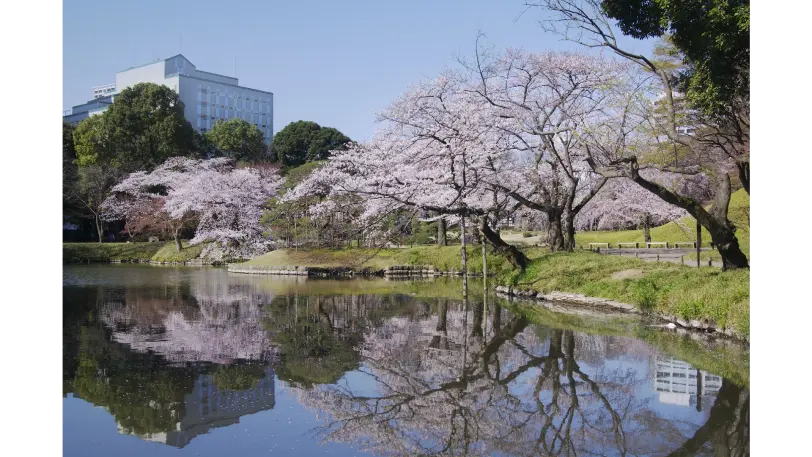 水戸徳川家ゆかりの小石川後楽園では、シダレザクラの開花より1週間遅れてソメイヨシノが開花します。園内に表現されている「海・山・川・田園」の内、大泉水を中心とした「海の景」でソメイヨシノを楽しむことができます。酒類の持込み、敷物を敷くことはできません。