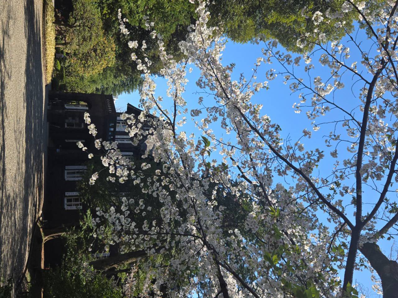ソメイヨシノとヤマザクラの大木が白と淡いピンクの花を見事に咲かせます。数はさほど多くないですが、特にシダレザクラは花の下に入り近くでご覧いただくことができます。洋館と桜という当園独特の景観も楽しめます。