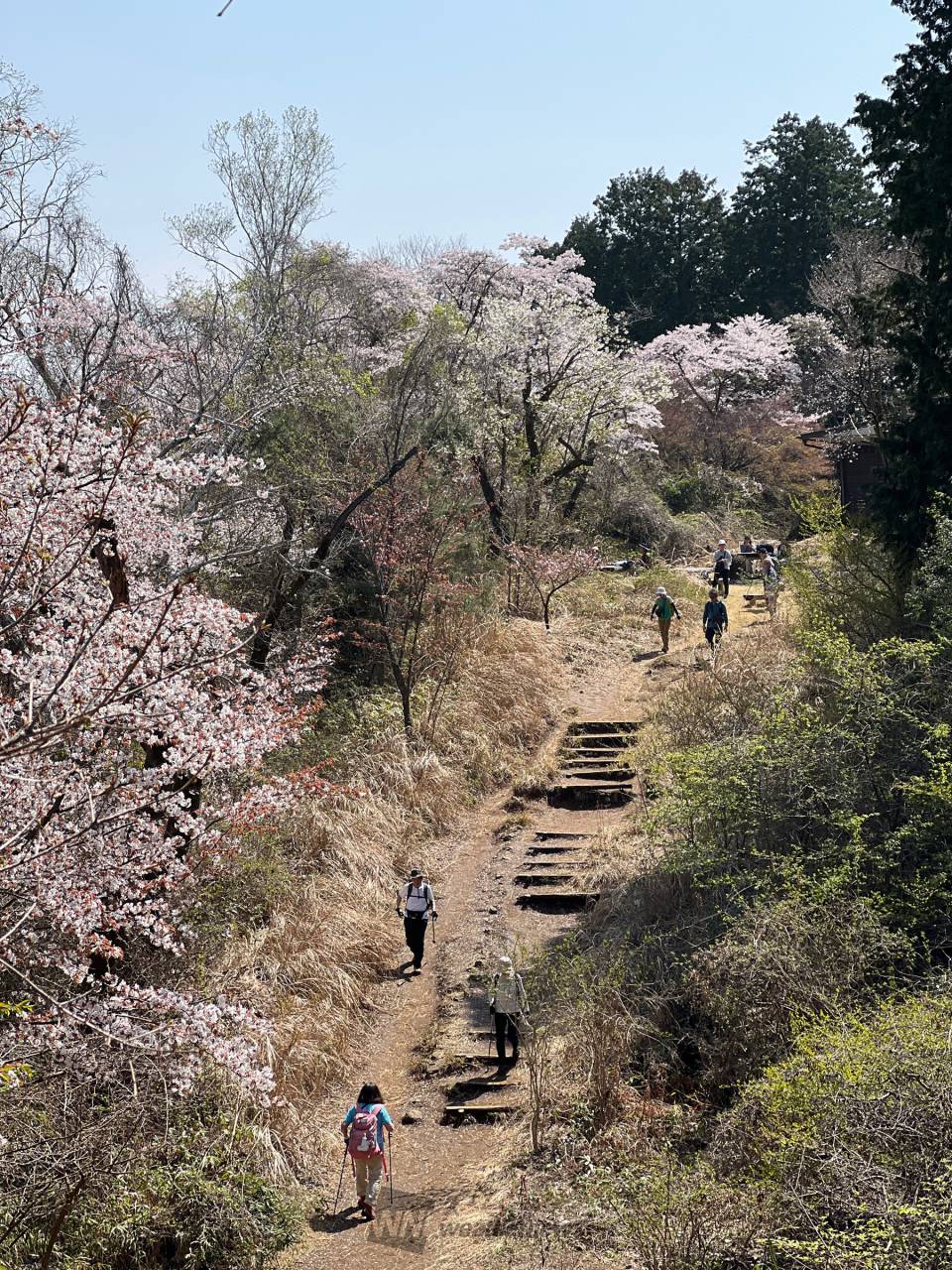 高尾山頂から小仏城山に向かうハイキングコース(一丁平)沿いに咲き、千本桜と言われています。ミツバツツジと一緒に楽しめます。