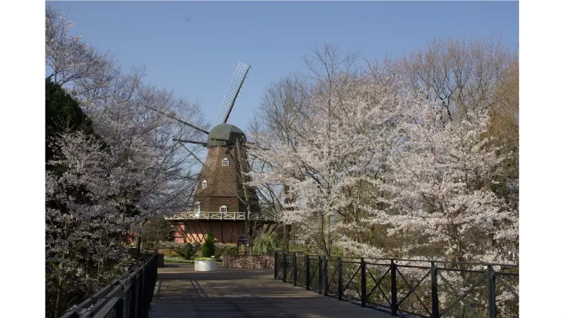 3月に開花するカンヒザクラを皮切りに、ソメイヨシノ、シダレザクラ、ヤエザクラなど15種類の桜が順次見頃を迎えます。見どころは、アスレチックや大滑り台などで大人も子供も思い切り遊べる「ワンパク王国ゾーン」。ソメイヨシノ、シダレザクラ、ヤエザクラは3月下旬から4月にかけて見頃を迎えます。