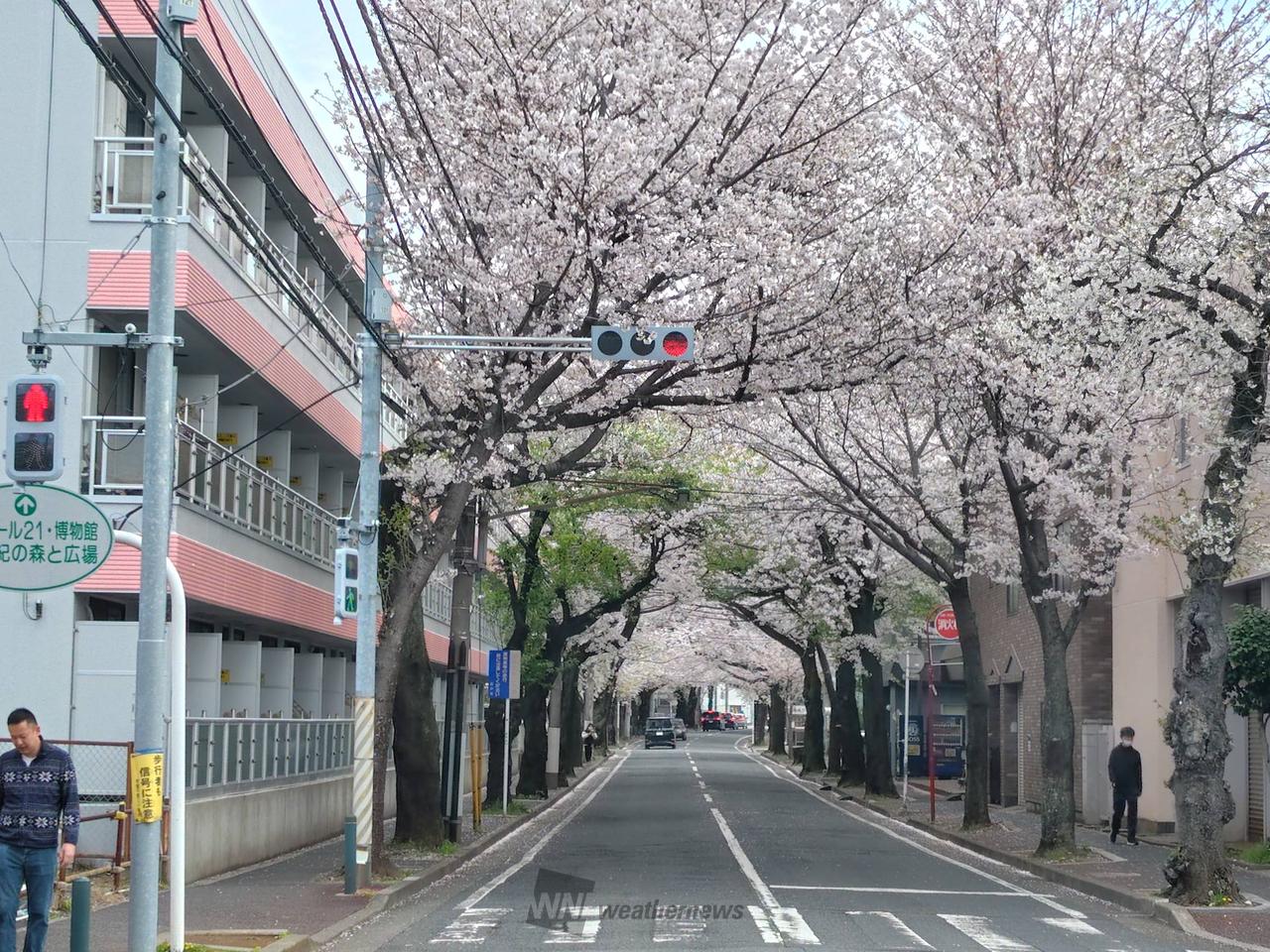 「日本の道100選」に指定され、約3.1kmにわたり桜のトンネルが続いています。