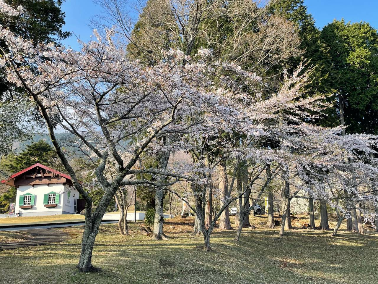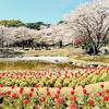 パーク駐車場の桜並木は圧巻です。園内ではアトラクションに乗りながら桜が楽しめます。