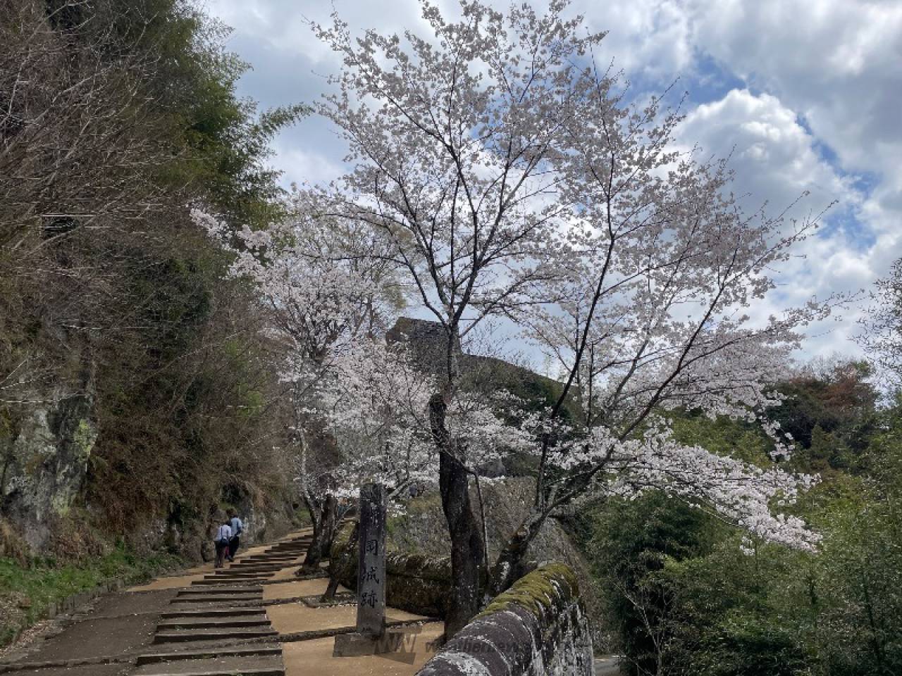 四方を断崖絶壁の谷に囲まれた難攻不落の名城には「日本のさくら名所百選」に選ばれるほど見事な桜が咲き誇る。苔むした石垣と、満開の桜に囲まれ見下ろす景色は、歴史のロマンさえ感じる絶景。