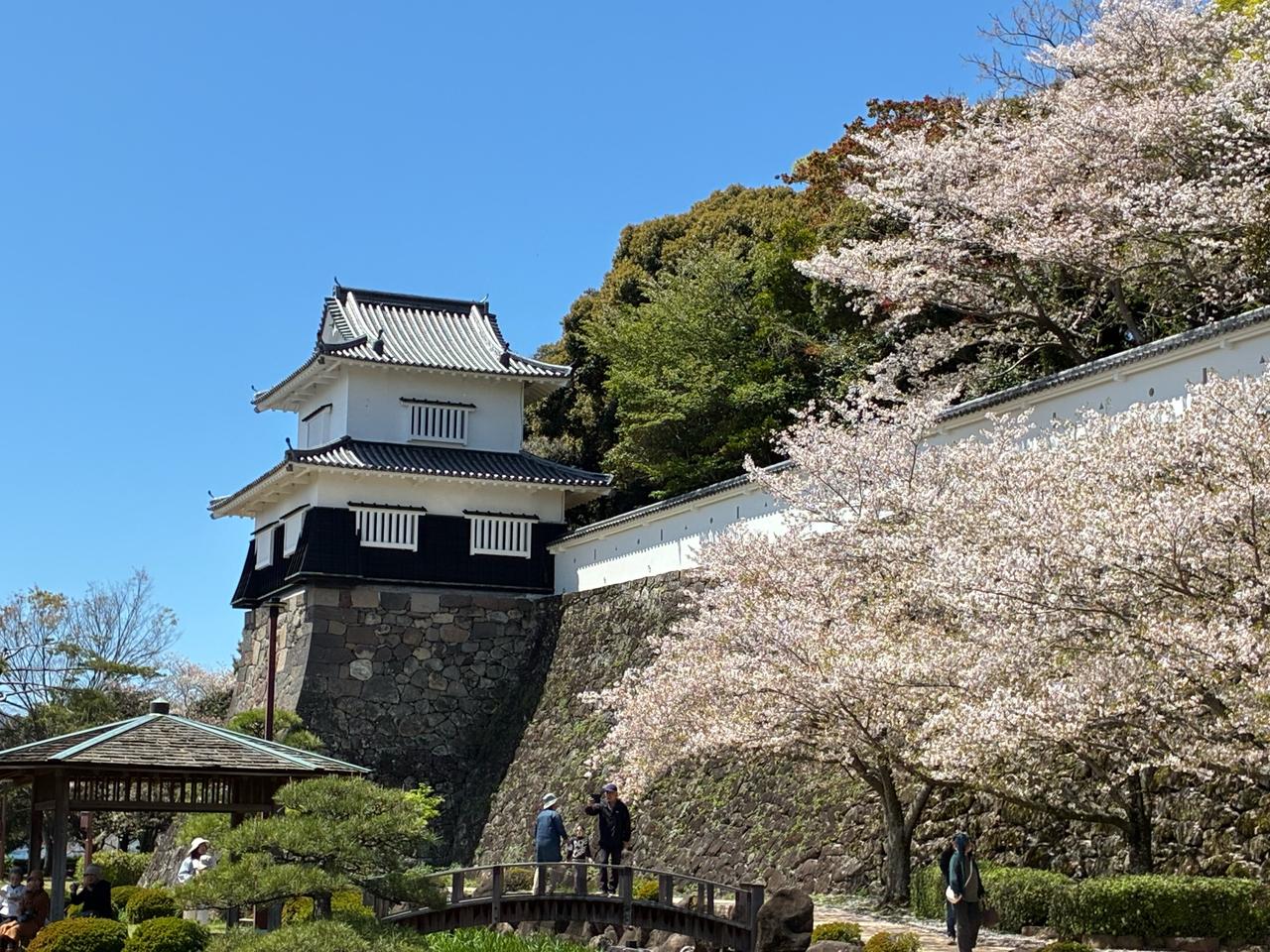 「日本さくら名所100選」の地、大村公園は3月下旬から4月中旬にかけて、20種類以上のさまざまな桜が順次開花し、公園一帯をピンク色に染めます。また「日本の歴史公園100選」の地にも選定されている大村公園は、大村藩主の居城であった玖島城跡にあります。城の南堀に面した美しい石垣の勾配とソメイヨシノが織りなす景色は、桜の季節ならではの城下町の風情が漂います。